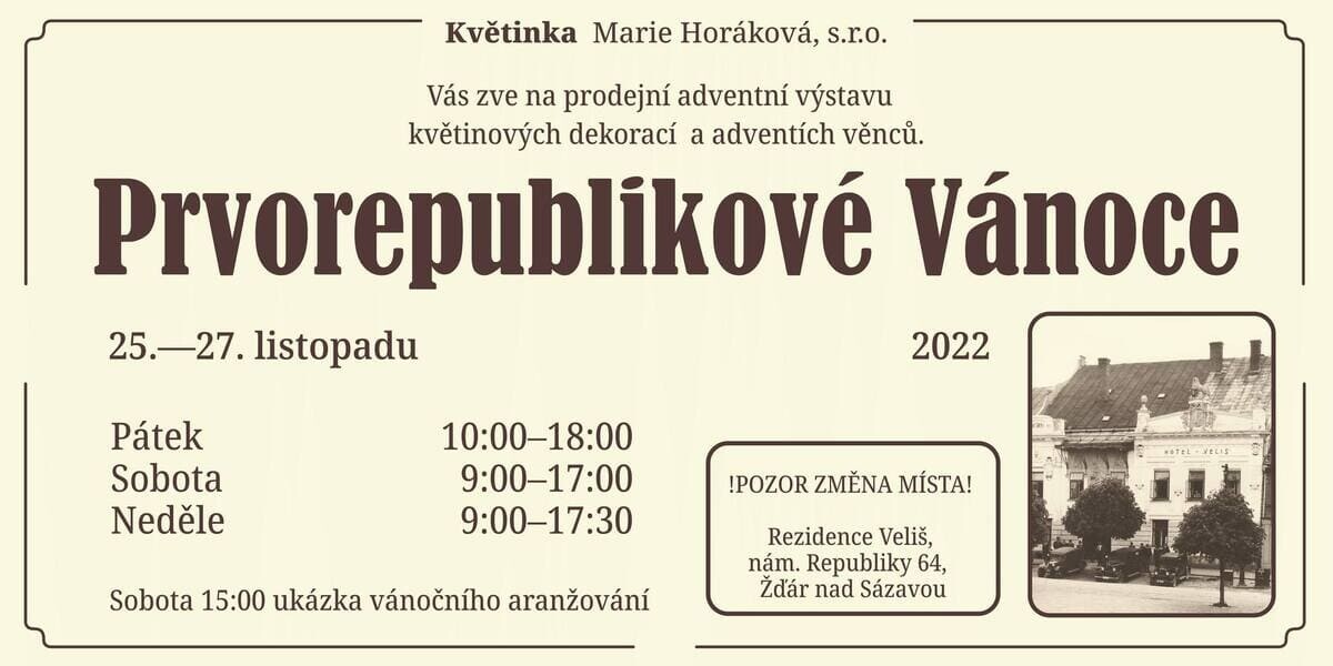 Květinka Marie Horáková s.r.o. Vás zve na prodejní výstavu květinových dekorací a adventních věnců.