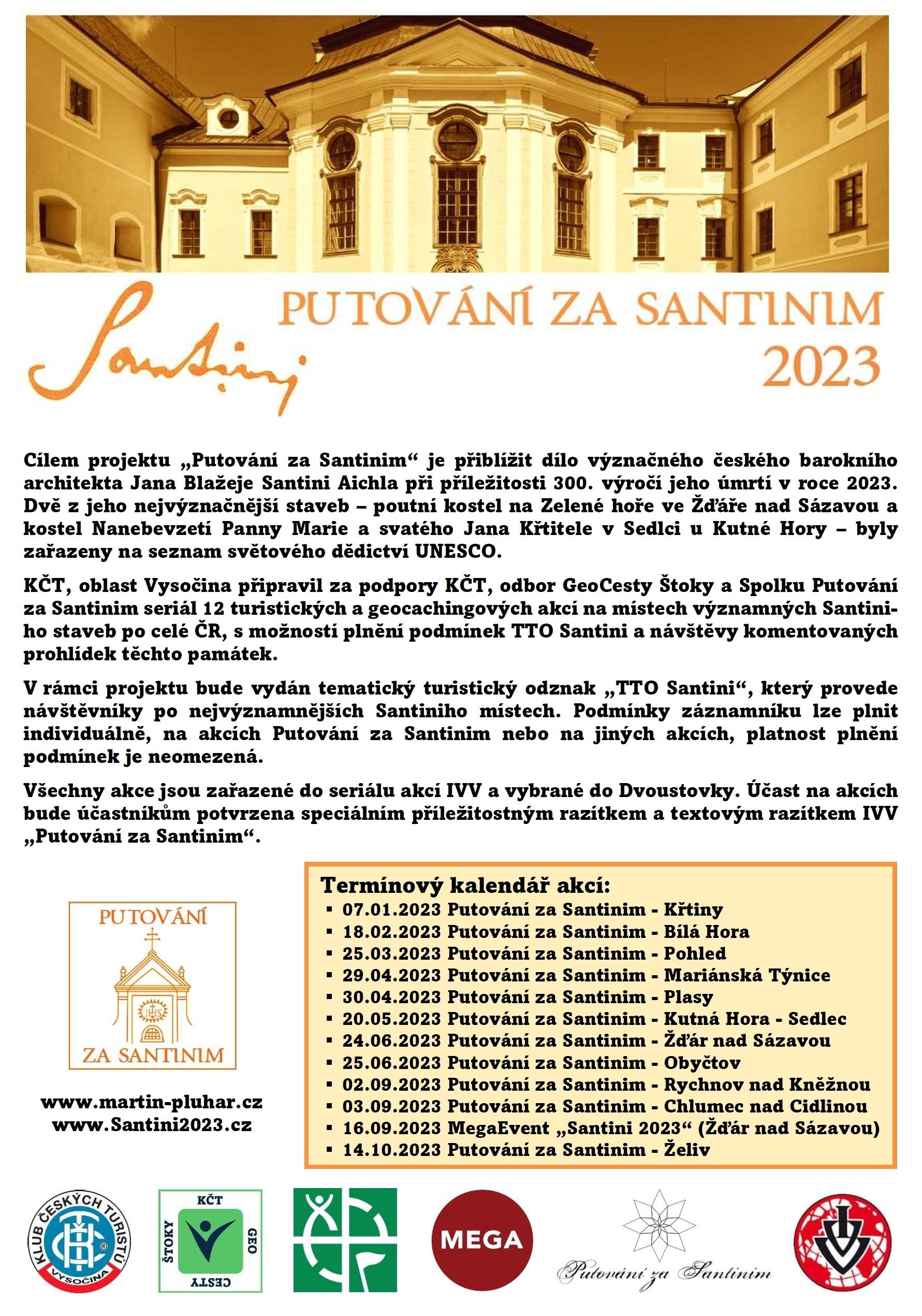 Cílem projektu ''Putování za Santinim'' je přiblížit dílo význačného českého barokního architekta Jana Blažeje Santini Aichla při příležitosti 300. výročí jeho úmrtí v roce 2023. Dvě z jeho nejvýznamějších staveb - poutní kostel na Zelené hoře ve Žďáře nad Sázavou a kostel Nanebevzetí Panny Marie a svatého Jana Křtitele v Sedlci u Kutné Hory - byly zařazeny na seznam světového dědictví UNESCO.