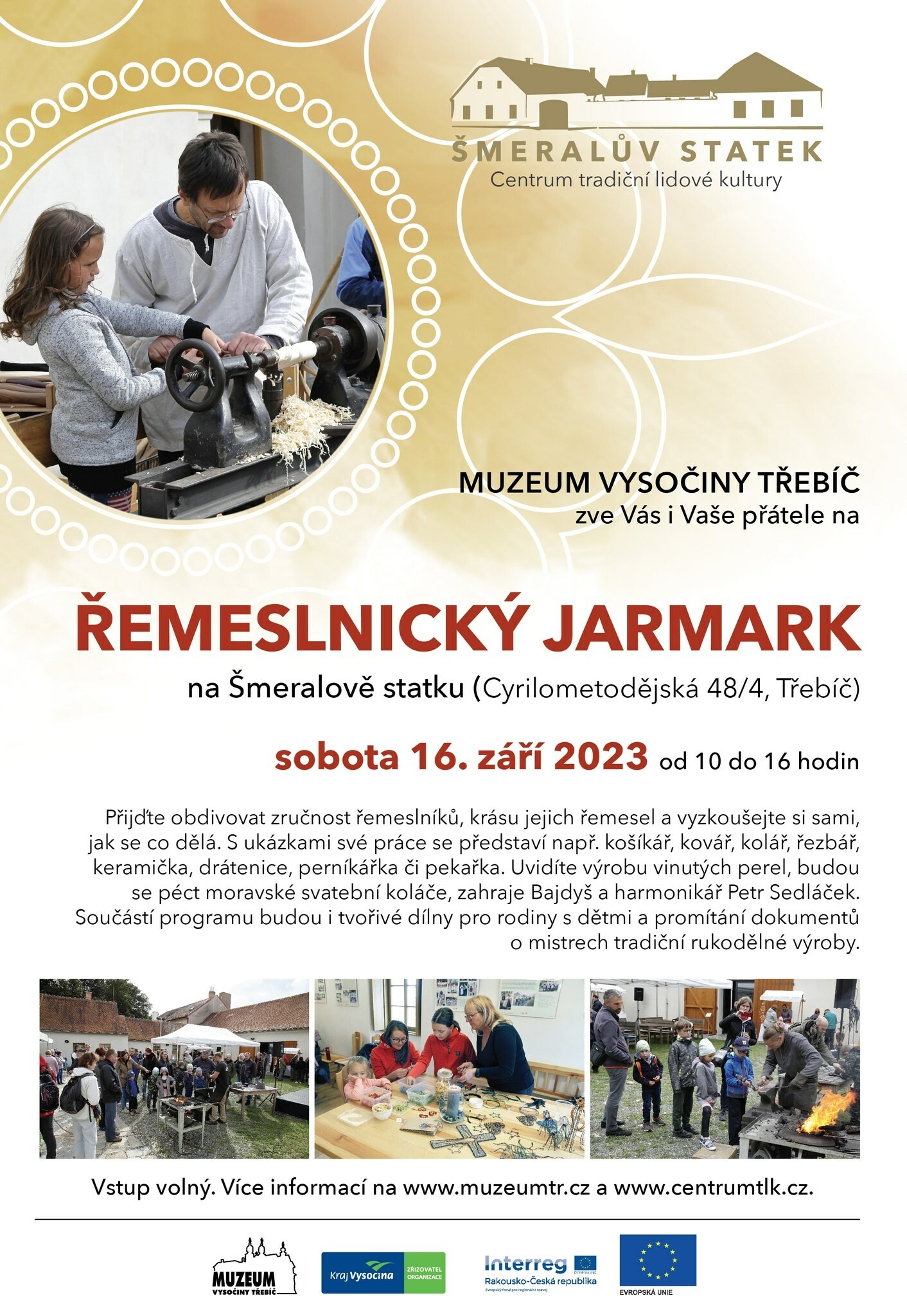 V sobotu 16. září přijďte od 10 do 16 hodin obdivovat zručnost řemeslníků, krásu jejich řemesel a vyzkoušejte si sami, jak se co dělá.