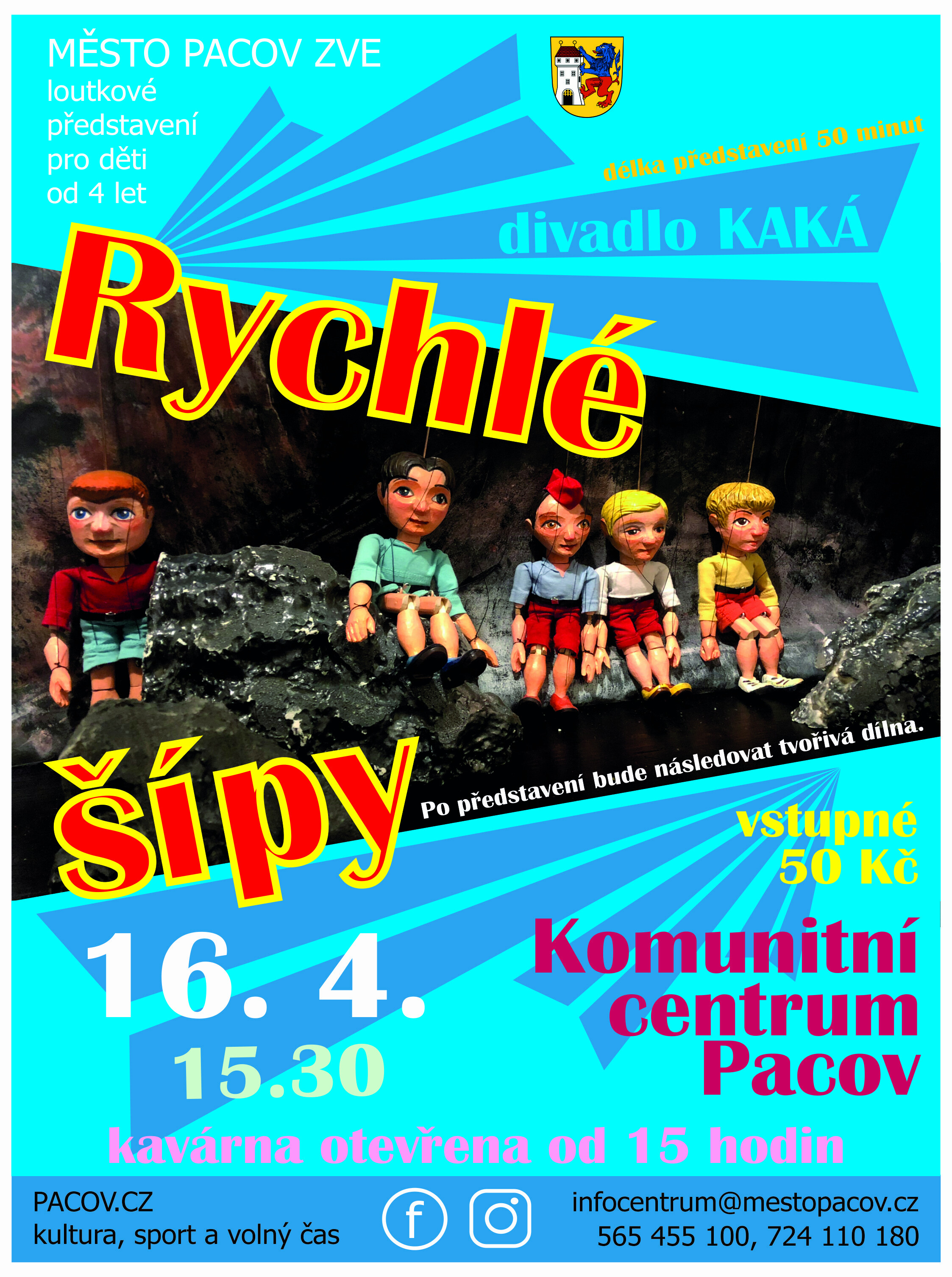 Loutkové představení pro děti od 4 let v podání divadla KAKÁ. Délka představení 50 minut. Po divadle bude následovat tvořivá dílna. Vstupné 50 Kč. Kavárna otevřena od 15 hodin.