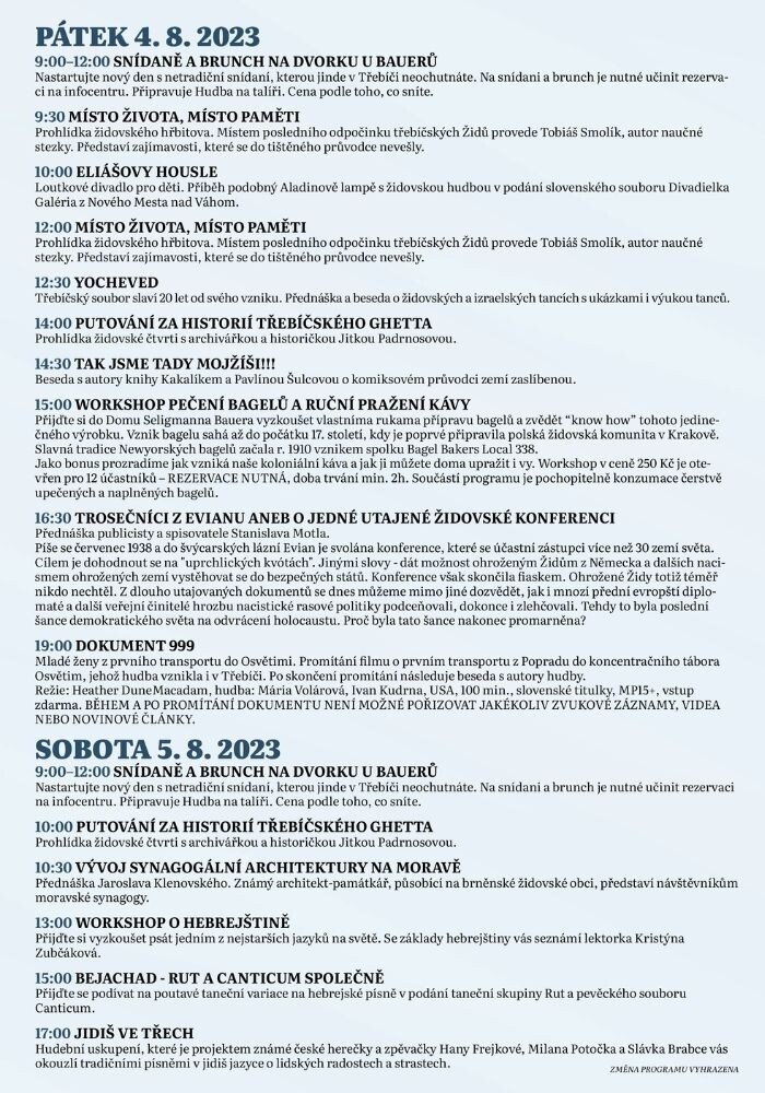 Můžete se těšit na koncerty, přednášky, divadlo pro děti, workshopy a židovskou kuchyni.