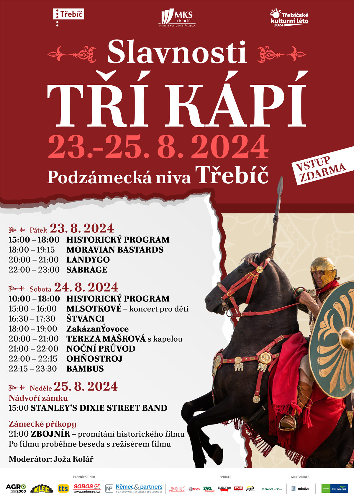V pátek 23. a sobotu 24. srpna se na Podzámecké nivě uskuteční každoroční historické Slavnosti tří kápí, které připomínají zapsání památek na seznam UNESCO. V letošním roce slavíme již 21. výročí této události. V neděli 25. srpna zakončíme slavnosti koncertem na nádvoří zámku a večerním promítáním v zámeckých příkopech.