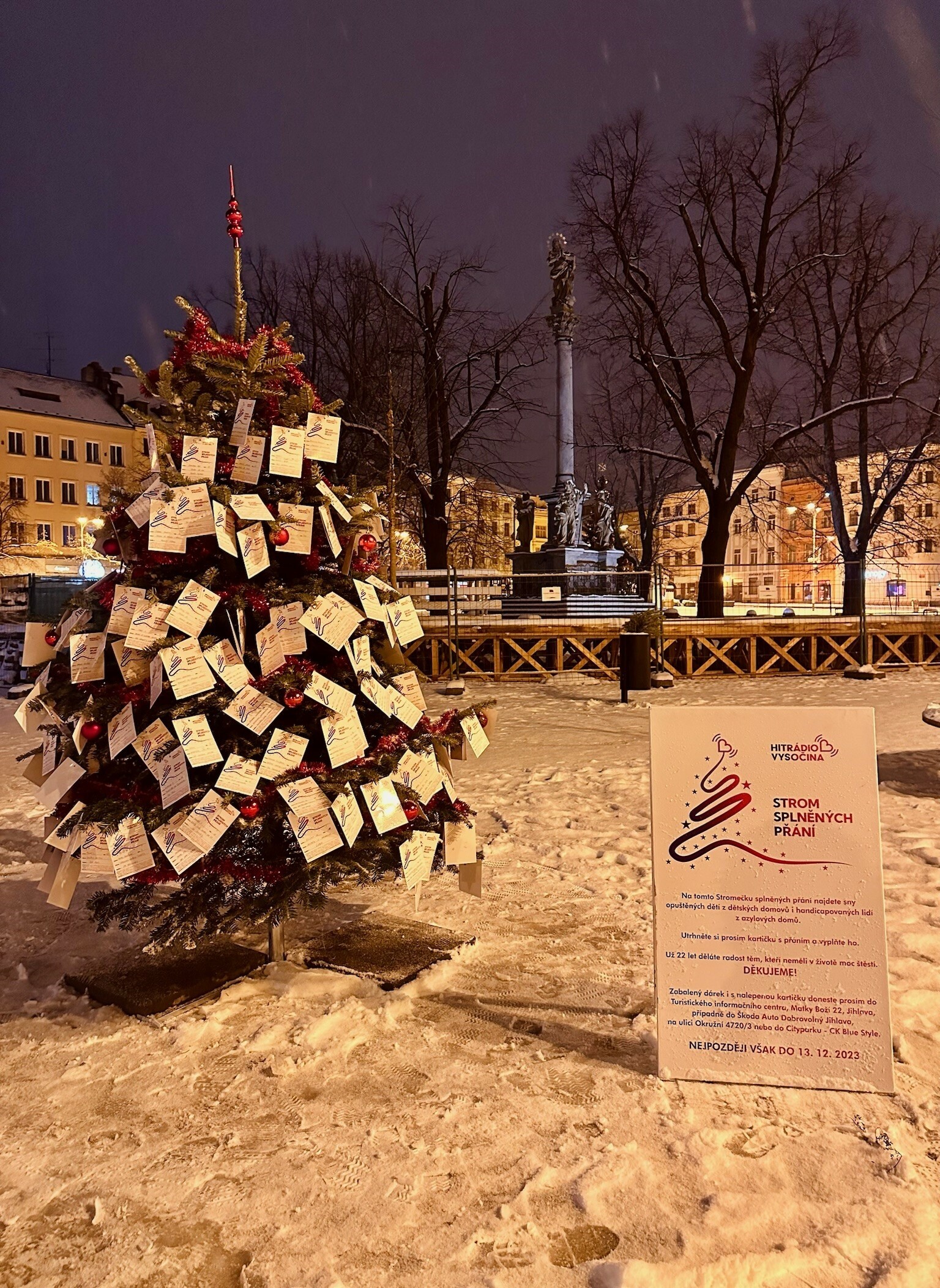 Promo tým Hitrádia Vysočina o posledním listopadovém víkendu postavil na 6 místech v kraji již tradiční „Stromy splněných přání". V rámci letošního 22. ročníku je na stromech umístěno více než 3000 přání dětí z 27 dětských domovů, ústavů sociální péče nebo azylových domů z kraje Vysočina. Každý, kdo se rozhodne splnit nějaké z uvedených přání, může dárek donést do 13. prosince do sběrného místa buď v informačním centru daného města, nebo do 17. prosince do prodejny Blue Style v jihlavském Cityparku.