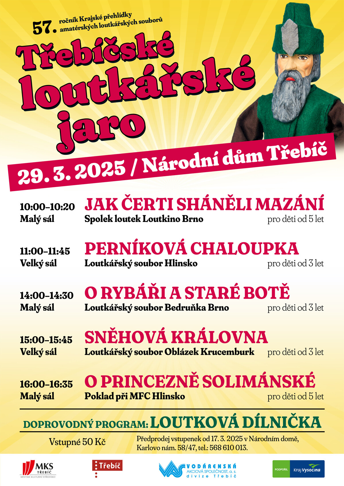 V sobotu 29. března 2025 proběhne již 57. ročník krajské soutěžní přehlídky amatérských loutkářských souborů Třebíčské loutkářské jaro.