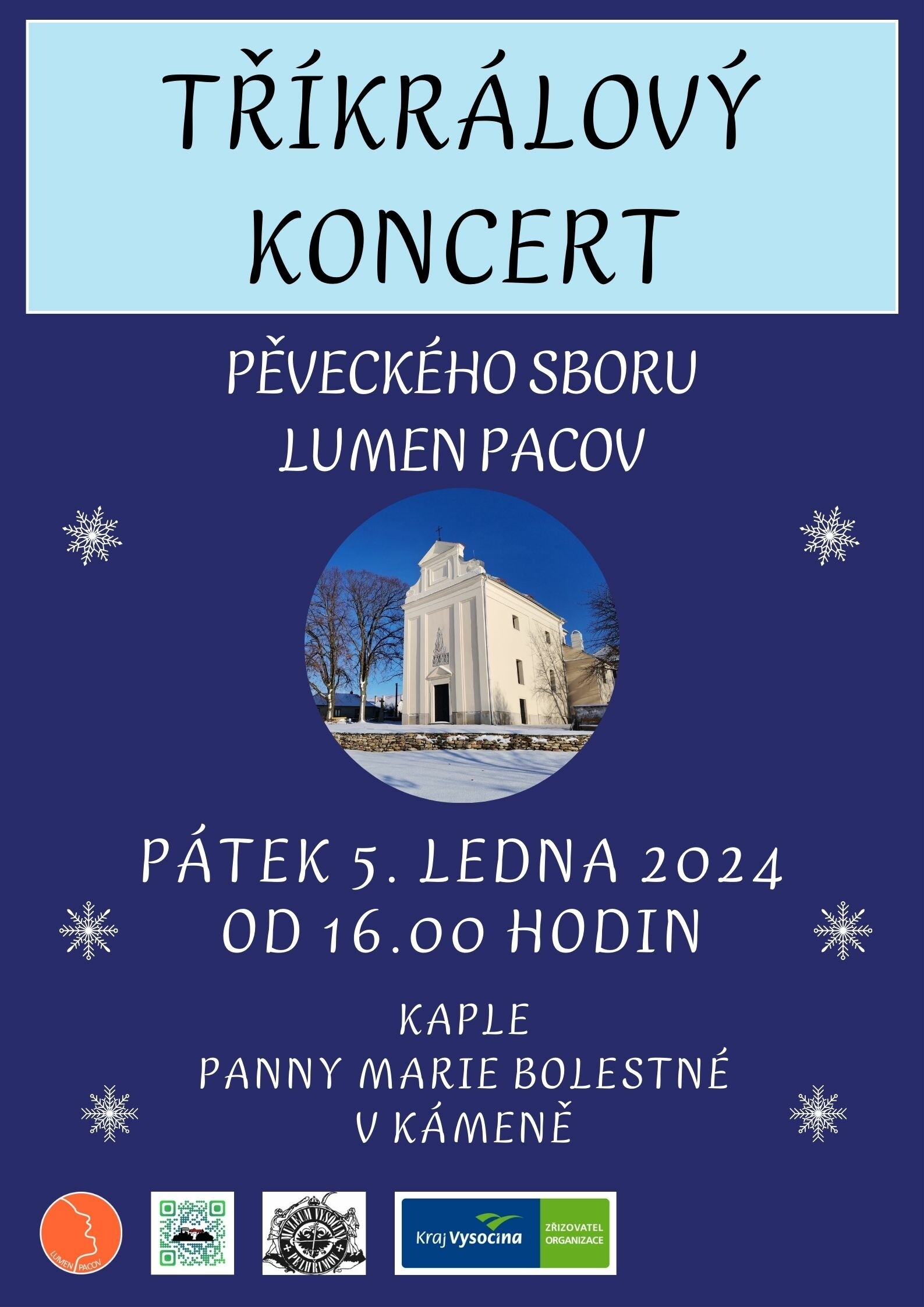 Muzeum Vysočiny Pelhřimov, p. o. vás všechny srdečně zve na Tříkrálový koncert, který se uskuteční v pátek 5. ledna 2024 od 16.00 hodin v kapli Panny Marie Bolestné v Kámeně.