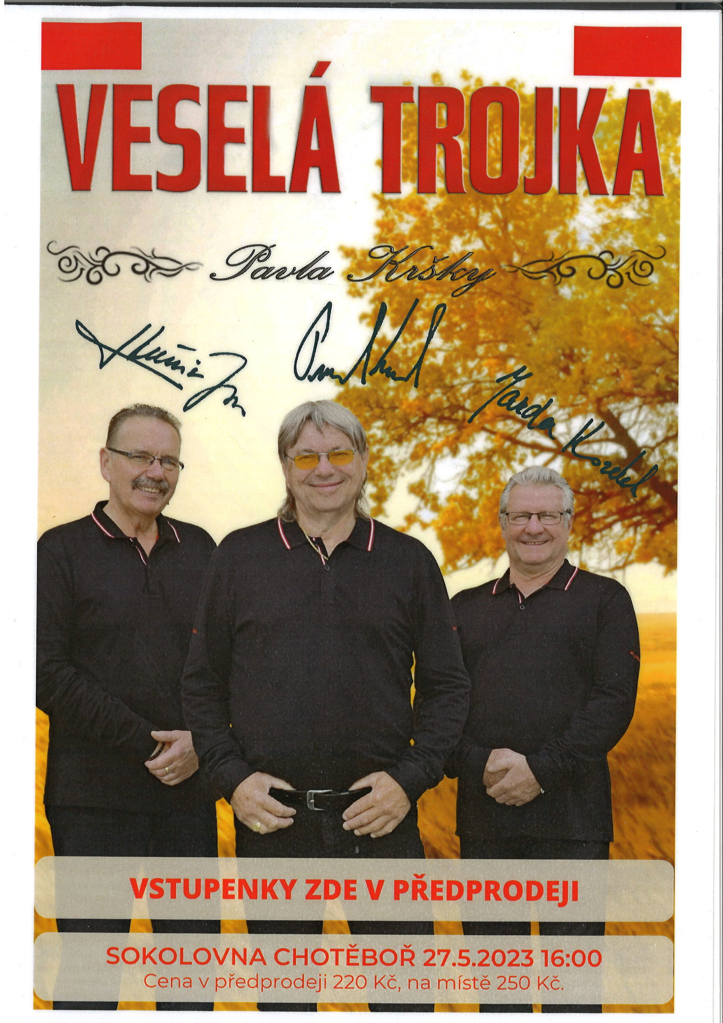 ...Předprodej vstupenek za 220 Kč v Informačním centru Chotěboř. Na místě 250 Kč. Vstupné není na místenky