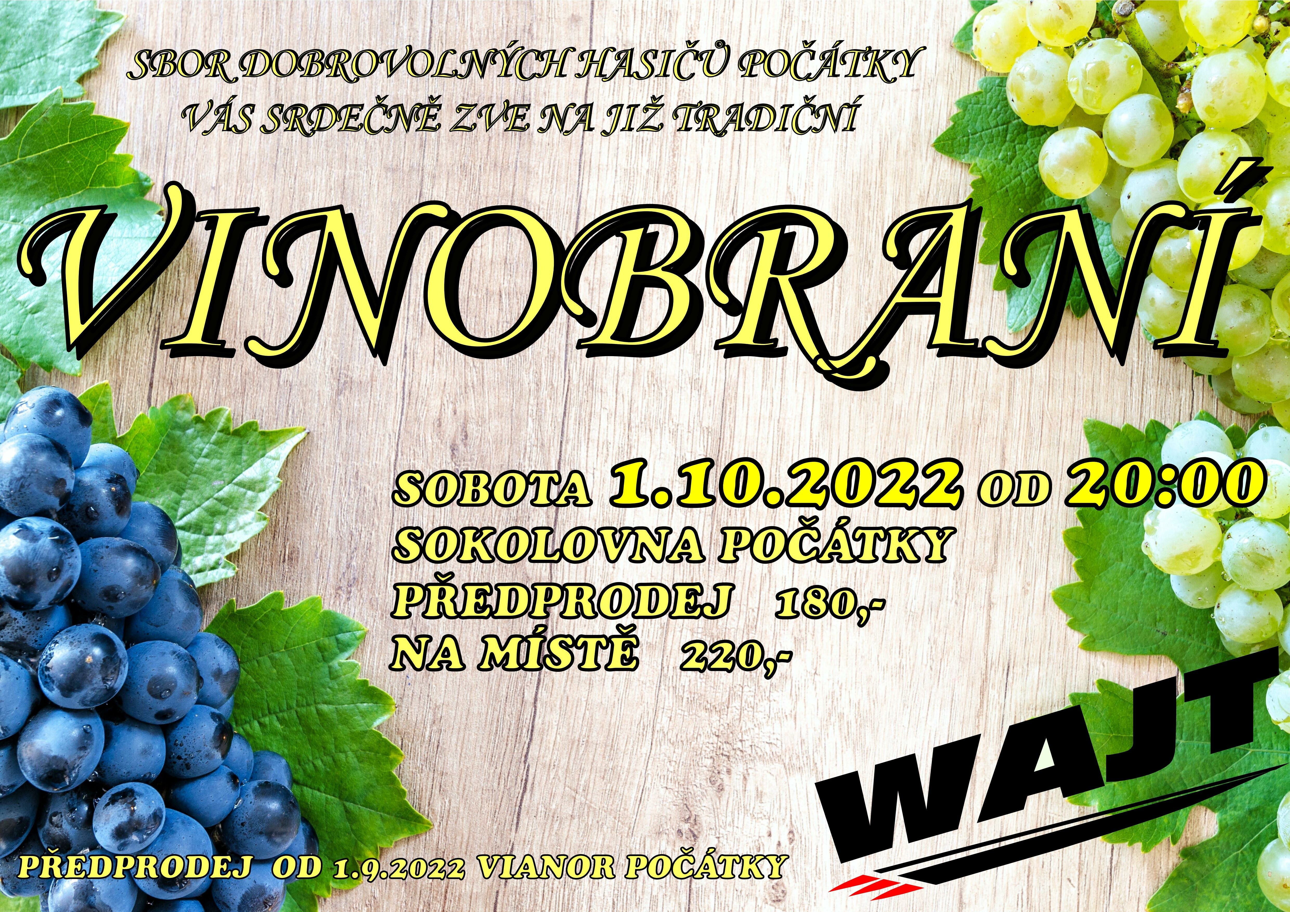 SDH Počátky vás srdečně zve na již tradiční VINOBRANÍ.