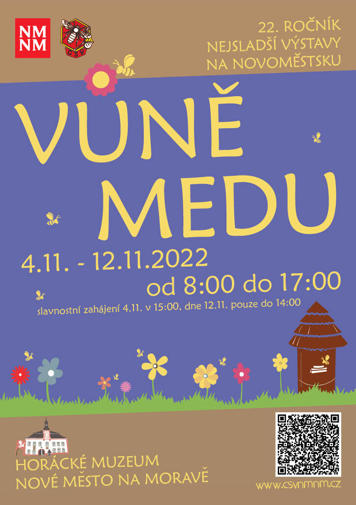 Slavnostní zahájení 22. ročníku včelařské výstavy se uskuteční v pátek 4. listopadu v 15 hod. Na výstavě zakoupíte med, medovinu, medové pivo, perníčky, svíčky, ozdoby, dekorace, literaturu, pomůcky a potřeby pro včelaře aj.