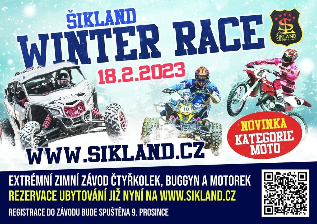 Extrémní zimní závod čtyřkolek, buggyn a motorek.