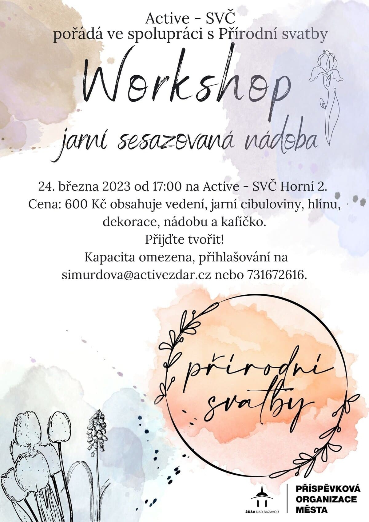 Cena: 600 Kč obsahuje vedení, jarní civuloviny, hlínu, dekorace, nádobu a kafíčko.