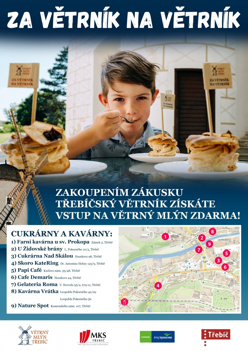 Se začátkem hlavní turistické sezony se do kaváren a cukráren v Třebíči vrací oblíbený zákusek. Tím je větrník.