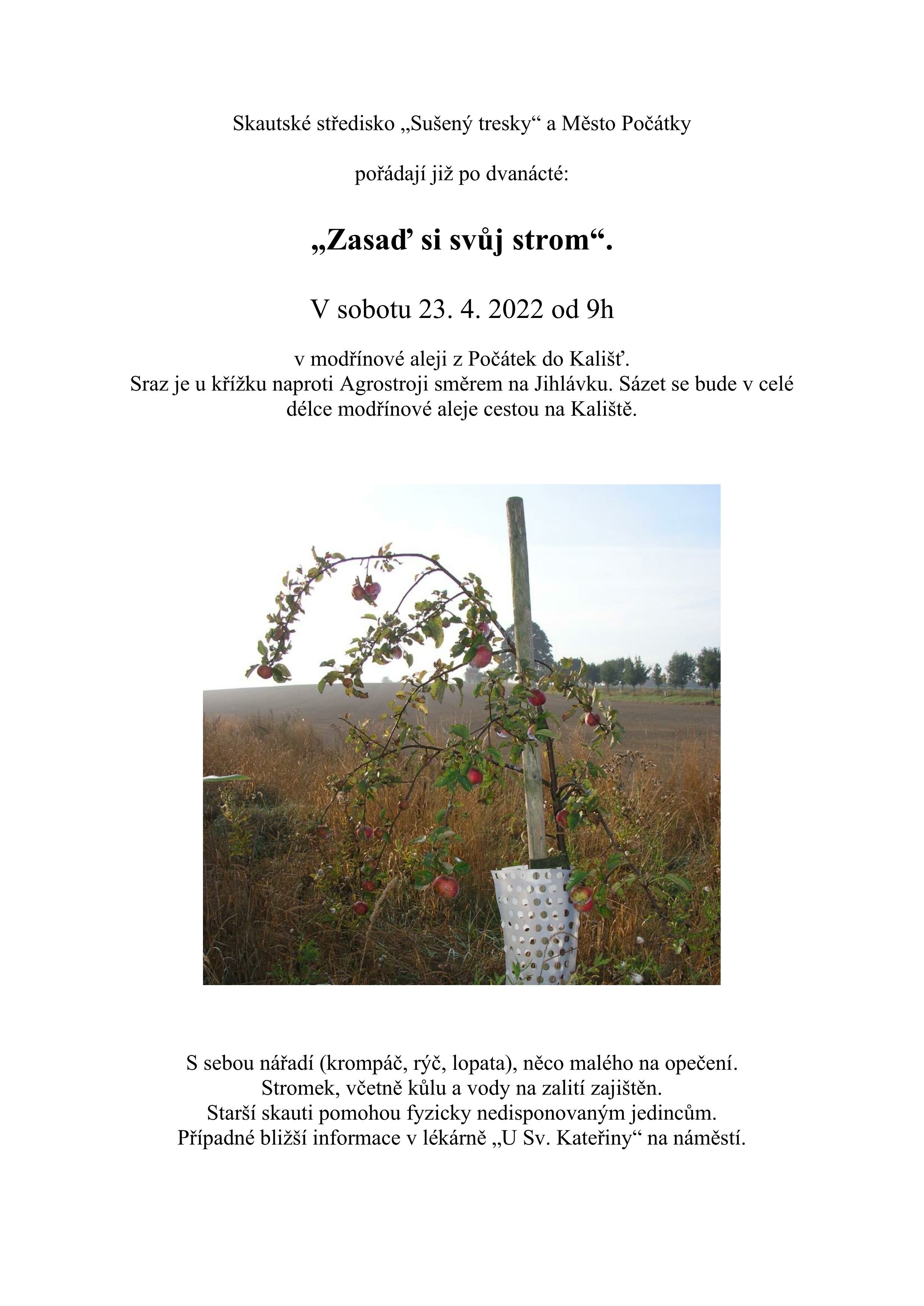 Stromek, včetně kůlu a vody na zalití zajištěn.