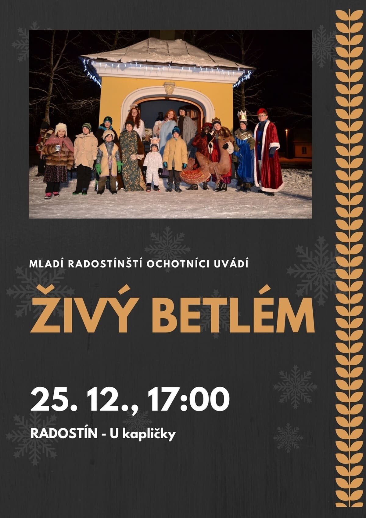Radostín u Vojnova Městce je malá vesnička nedaleko Žďáru nad Sázavou. Již několik let se zde na Boží hod vánoční schází stovky lidí ze širokého okolí, aby shlédly kouzelný vánoční příběh o narození Ježíška.