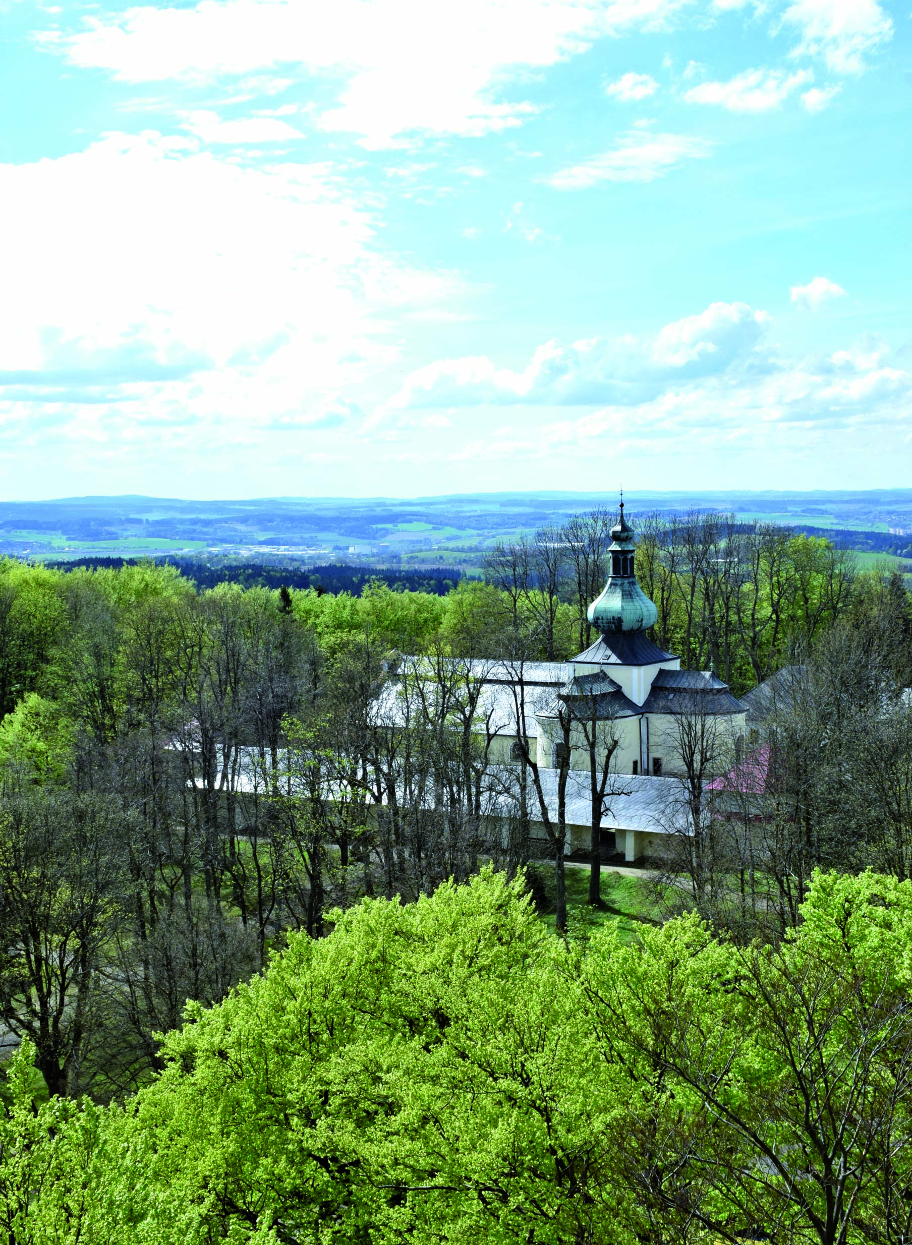 Pozdně barokní kostel z roku 1752 zasvěcený Nejsvětější Trojici na vrchu Křemešník (764 m n. m.).