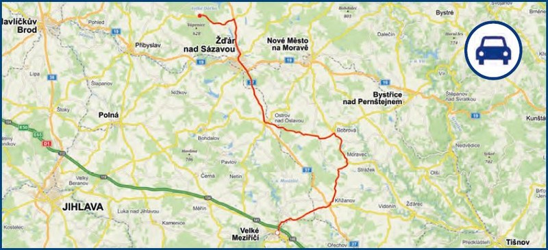 Výlet můžete zahájit ihned při sjezdu z D1 ve Velkém Meziříčí. U nejvyššího dálničního mostu D1 – Vysočina – se vypíná rozhledna Fajtův kopec, odkud při troše štěstí dohlédnete až na špičky Alp. Rozhledna je otevřena bez omezení. Město na soutoku řek Oslavy a Balinky je známé nejen jako město mostů, z nichž ten dálniční včetně dvou kamenných obloukových viaduktů uvidíte z rozhledny. Jeho dominantou je také renesanční zámek a muzeum. Po procházce městem se zcela jistě osvěžte v Jelínkově vile – hotelu, pivovaru i restauraci. Ta je známá svými rybími specialitami. A před spaním můžete třeba do bazénu či sauny.