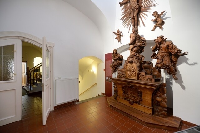 Sbírkové soubory galerie obsahují na sedm tisíc uměleckých děl. Zastoupeny jsou grafiky a ilustrace Cyrila Boudy, Adolfa Hoffmeistera, Emila Filly, Oty Janečka, Kamila Lhotáka, Jaroslava Panušky, Bohuslava Reynka, Karla Svolinského, Jiřího Trnky, Adolfa Zábranského, Jana Zrzavého a mnoha dalších. V prvním patře se také nachází takzvaný Uhrovský oltář se sousoším Kalvárie od Ignáce Rohrbacha. Vznikl kolem roku 1735 pro kapli Povýšení svatého Kříže na zámku v Uhrově.