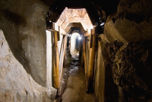 - Kolektory – moderní i historická část podzemního labyrintu, stoupání po ocelových žebřících
