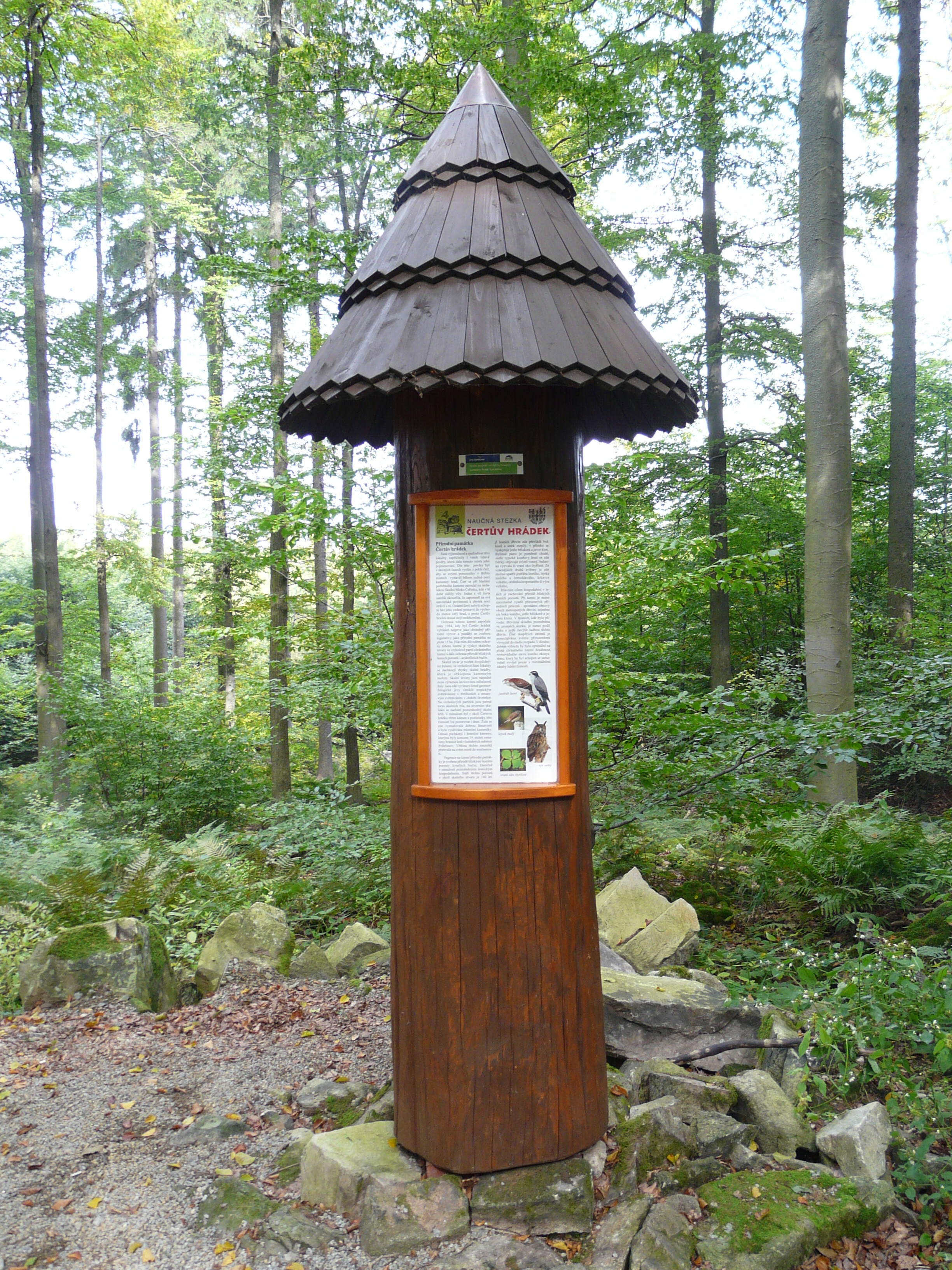 Nenáročná, krátká stezka značená cedulkami dovede zájemce až ke skalnímu útvaru Čertův hrádek. Na její trase jsou umístěny čtyři informační tabule a dva stoly a lavice, na začátku a na konci.