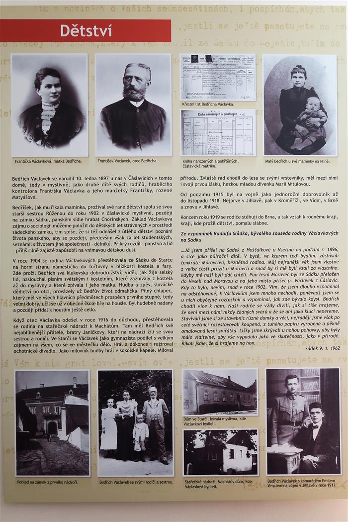 Rodný dům Bedřicha Václavka se nachází na jižní straně návsi. Dům je bývalou myslivnou. V roce 1962 byla upravena na památný objekt, který prošel kolem r. 2011 rekonstrukcí.