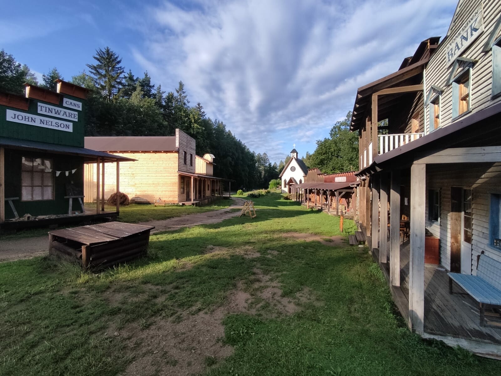 Ve westernovém městečku najdete všechny typické stavby Divokého západu: šerifovu stanici s vězením, saloon s barem, indiánské teepee, banku a kostel. Kromě toho tu můžete vyzkoušet řadu aktivit – lukostřelbu, rýžování zlata, hod tomahawkem, oštěpem, nožem nebo podkovou. Naučíte se také ovládat bič nebo rozdělat oheň. V závislosti na počasí se nabídka aktivit může měnit, ale rozhodně se máte na co těšit.