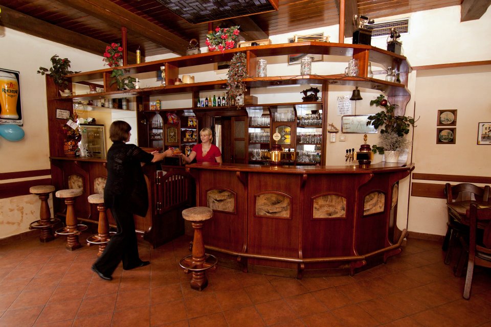Široký sortiment nápojů včetně čepovaných piv Rychtář a Černá Hora.