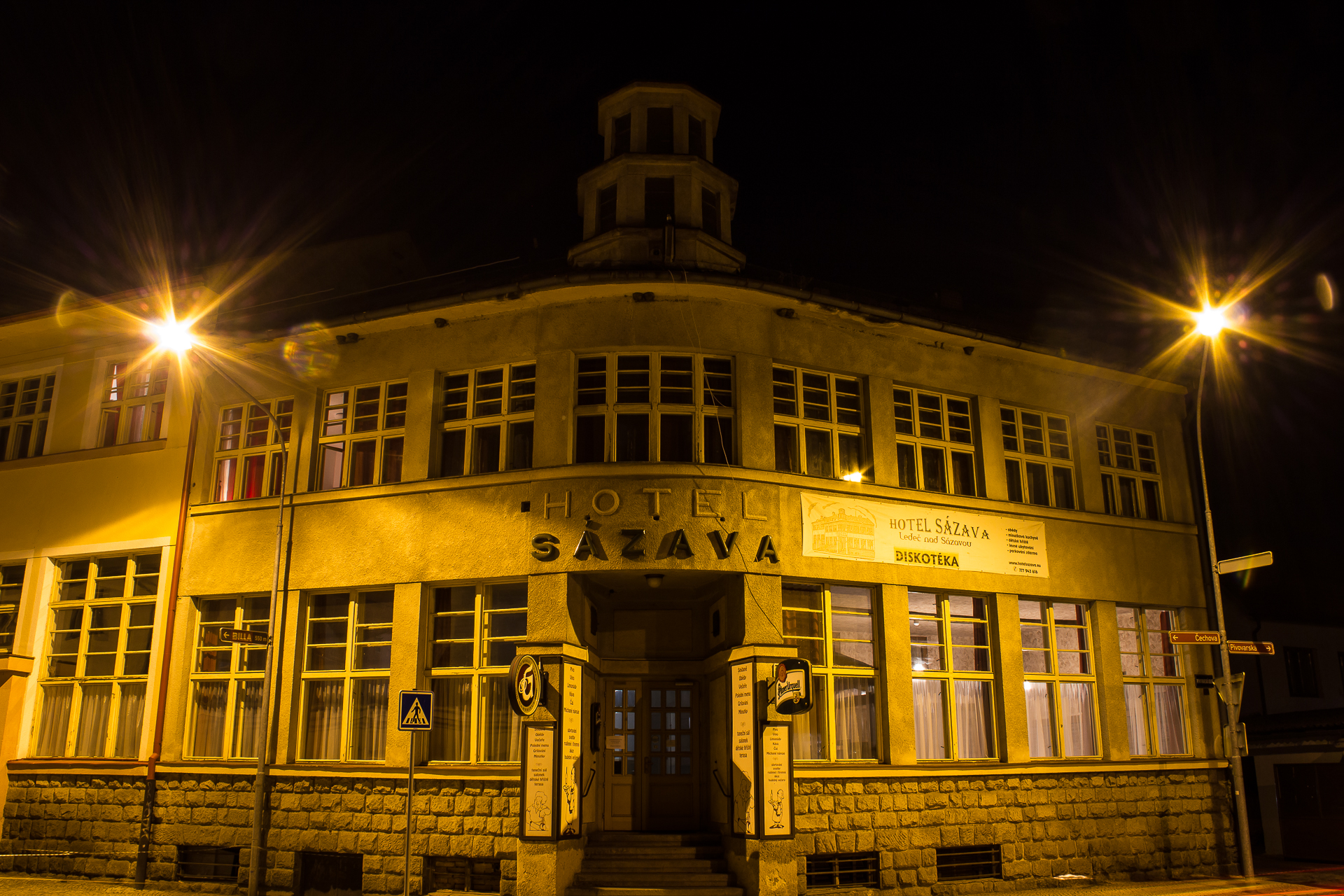Na místě současného Hotelu Sázava původně stála Zájezdní plzeňská restaurace Františky Hradecké, která po vyhoření v roce 1932 poskytla prostor pro vybudování nového hotelu ve stylu art deco.