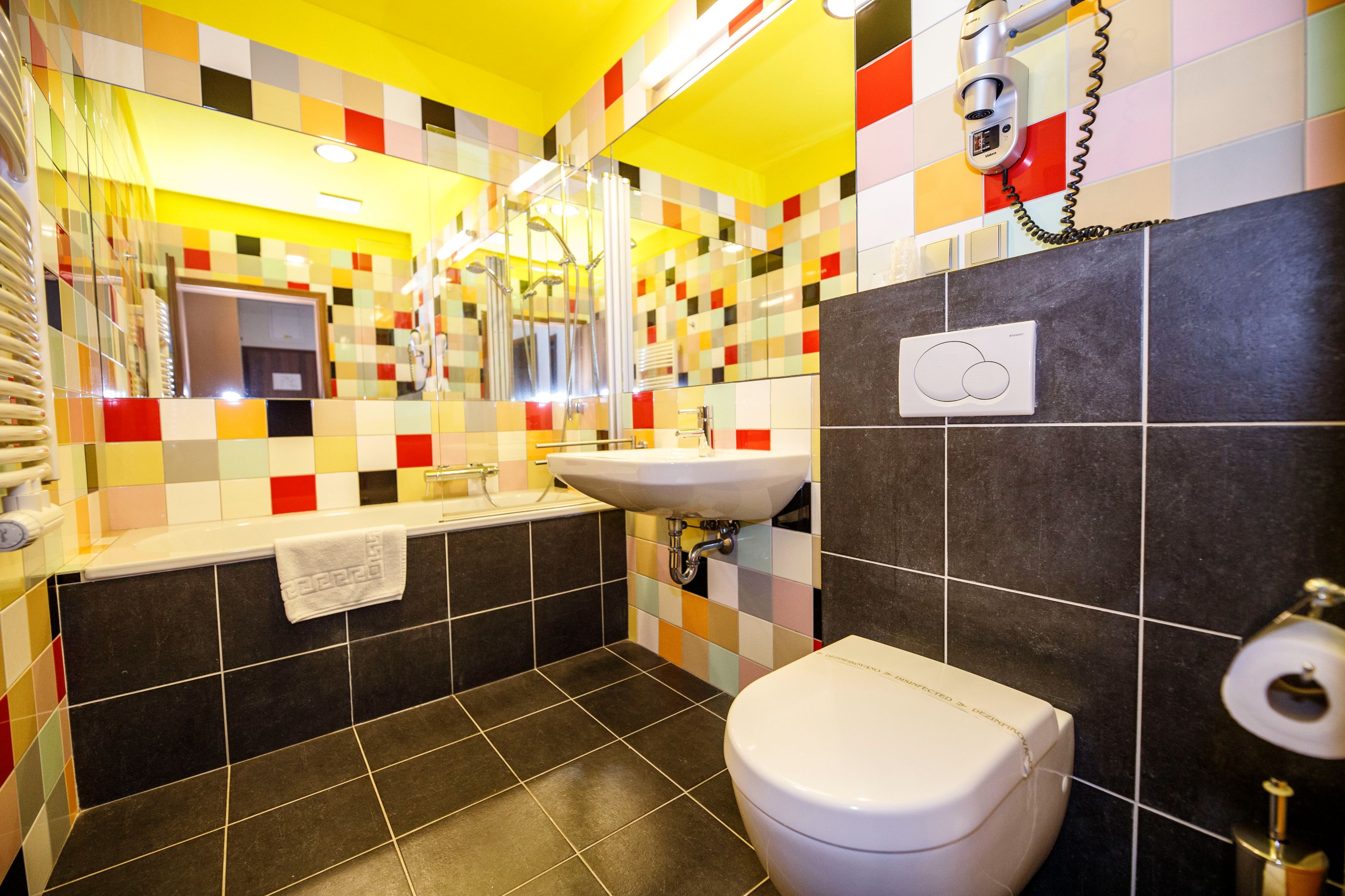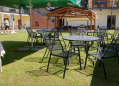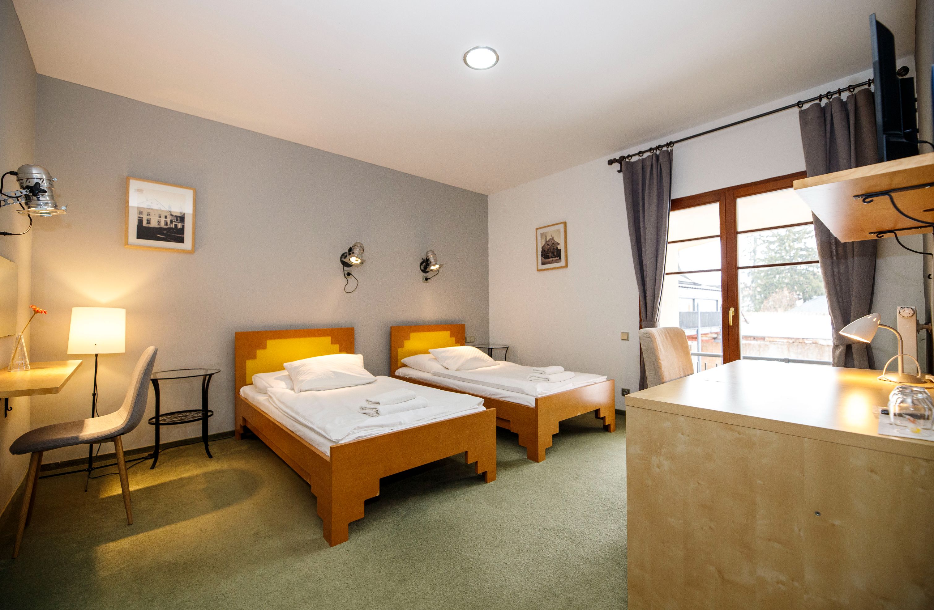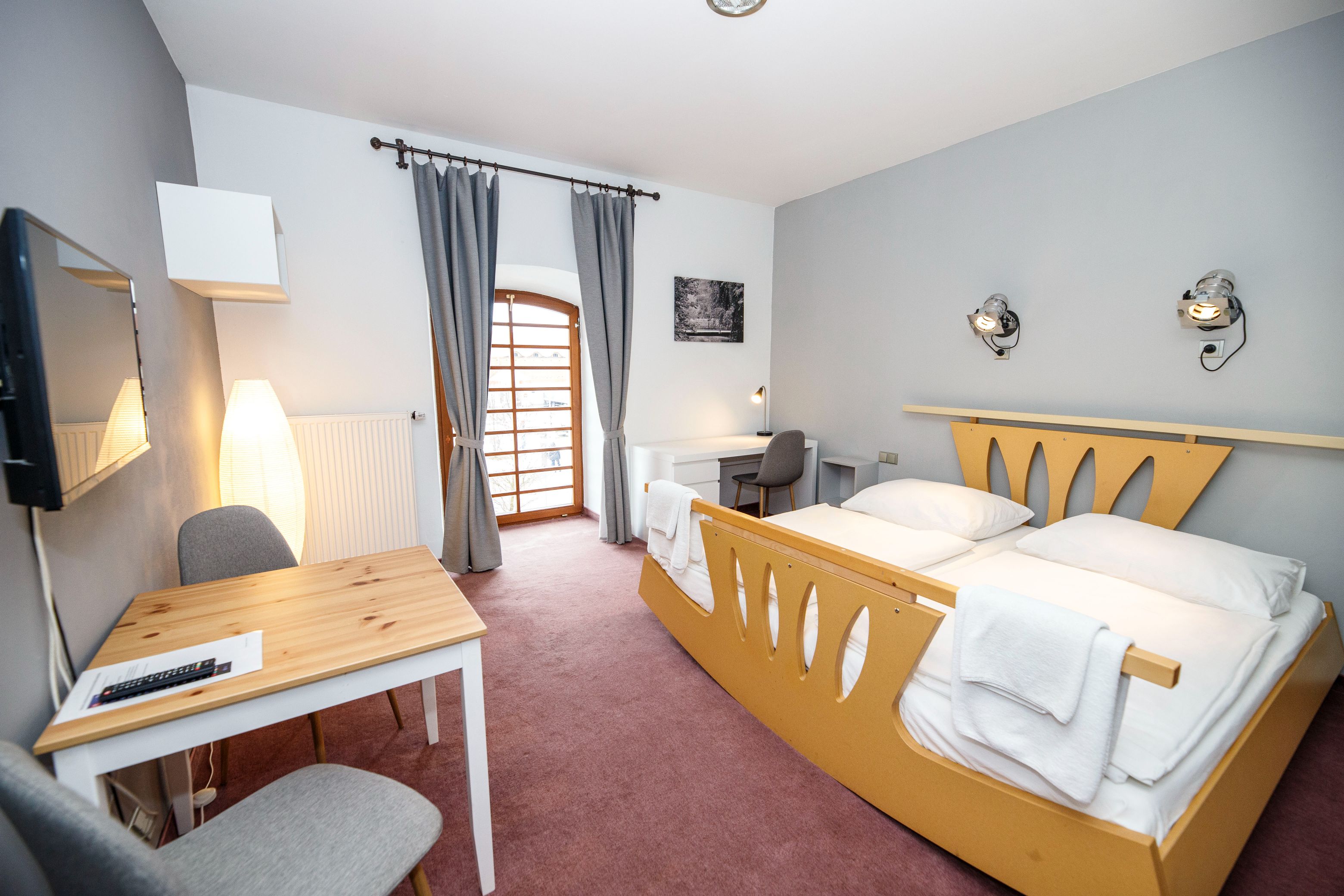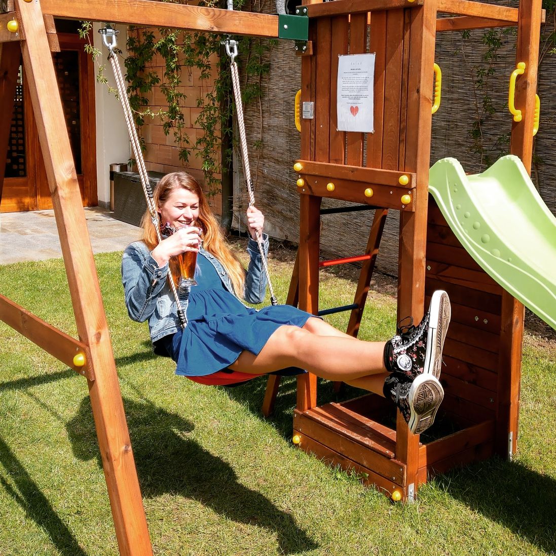 Rodiny s dětmi uvítají vnitřní travnaté atrium, kde je klidné posezení a děti si zde mohou hrát. Před budovou je potom další letní zahrádka s výhledem na park a věže renesančního zámku.