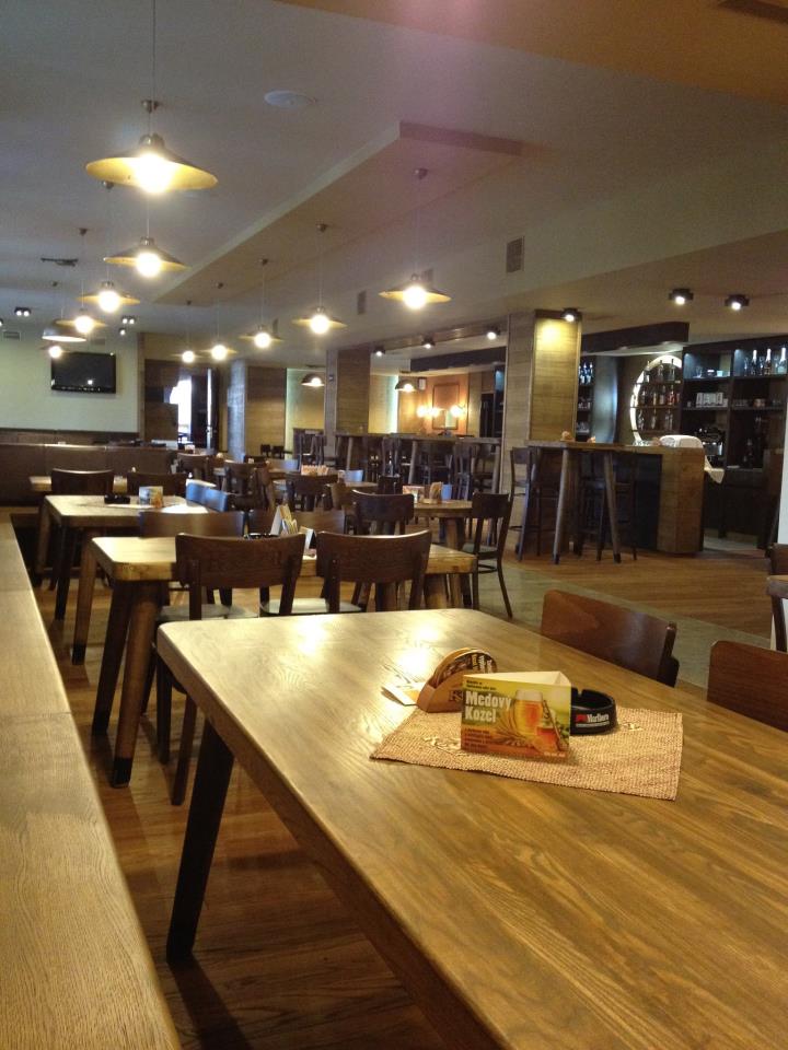 Majestátní socha Kozla, netradiční stoly s kovovými kopýtky nebo i takové detaily jako háčky na oblečení. Všechny tyto elementy ve spojení s materiály dřeva, kůže i kovu navozují příjemnou a nezapomenutelnou atmosféru každé Kozlovny. Do restaurace je umožněn vstup se psy.