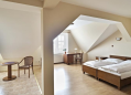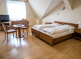 K dispozici je celkem 17 pokojů (z toho tři rodinné apartmány) s kapacitou 36 lůžek. Tu můžeme v případě potřeby navýšit díky pohodlným přistýlkám až na lůžek 50. Všechny pokoje mají vlastní sociální zázemí, pohodlné postele, televizi, lednici a kávový servis. V apartmánech je navíc plně vybavená kuchyně.