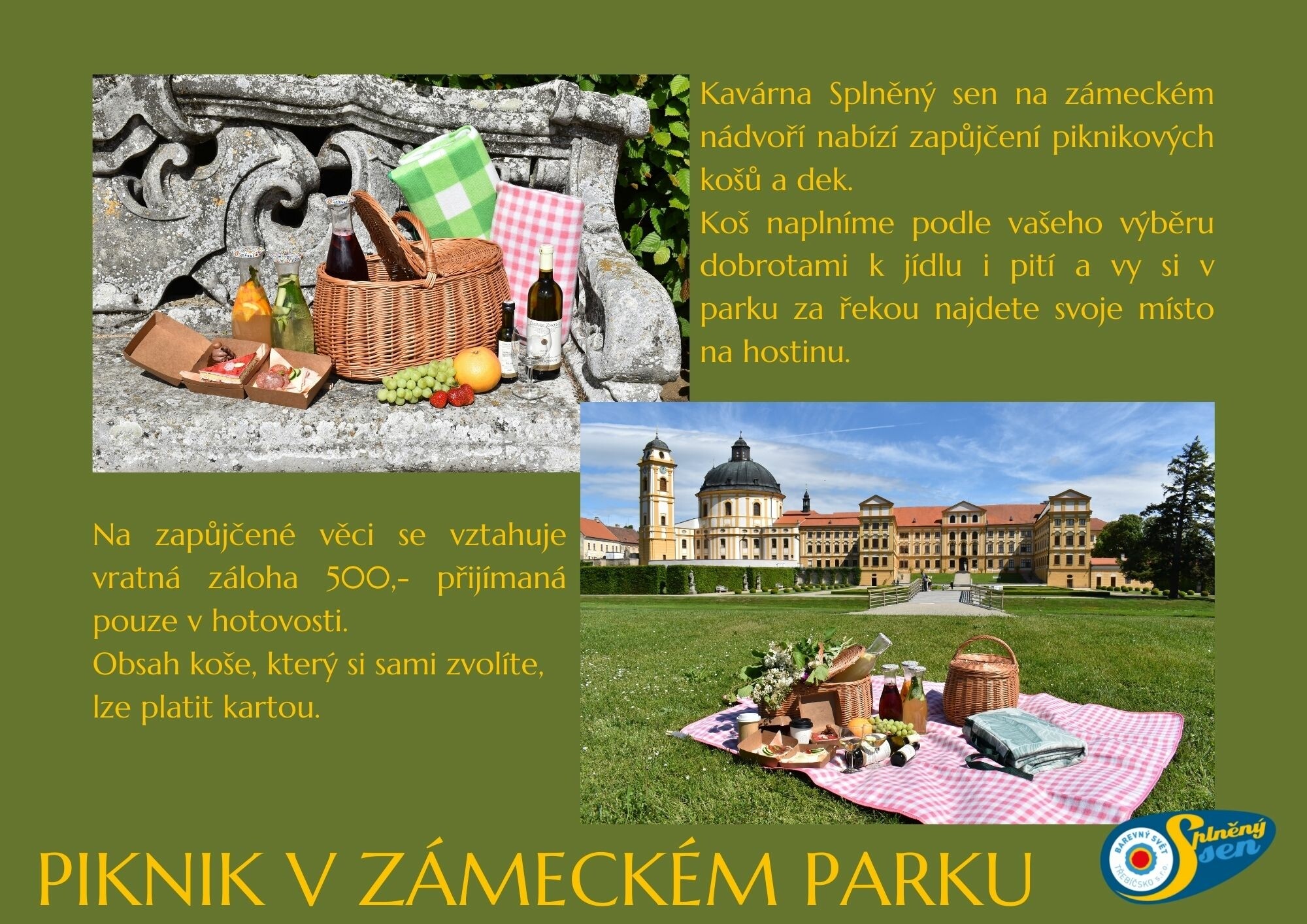 Kavárna Splněný sen se nachází přímo na nádvoří státního zámku Jaroměřice nad Rokytnou.
