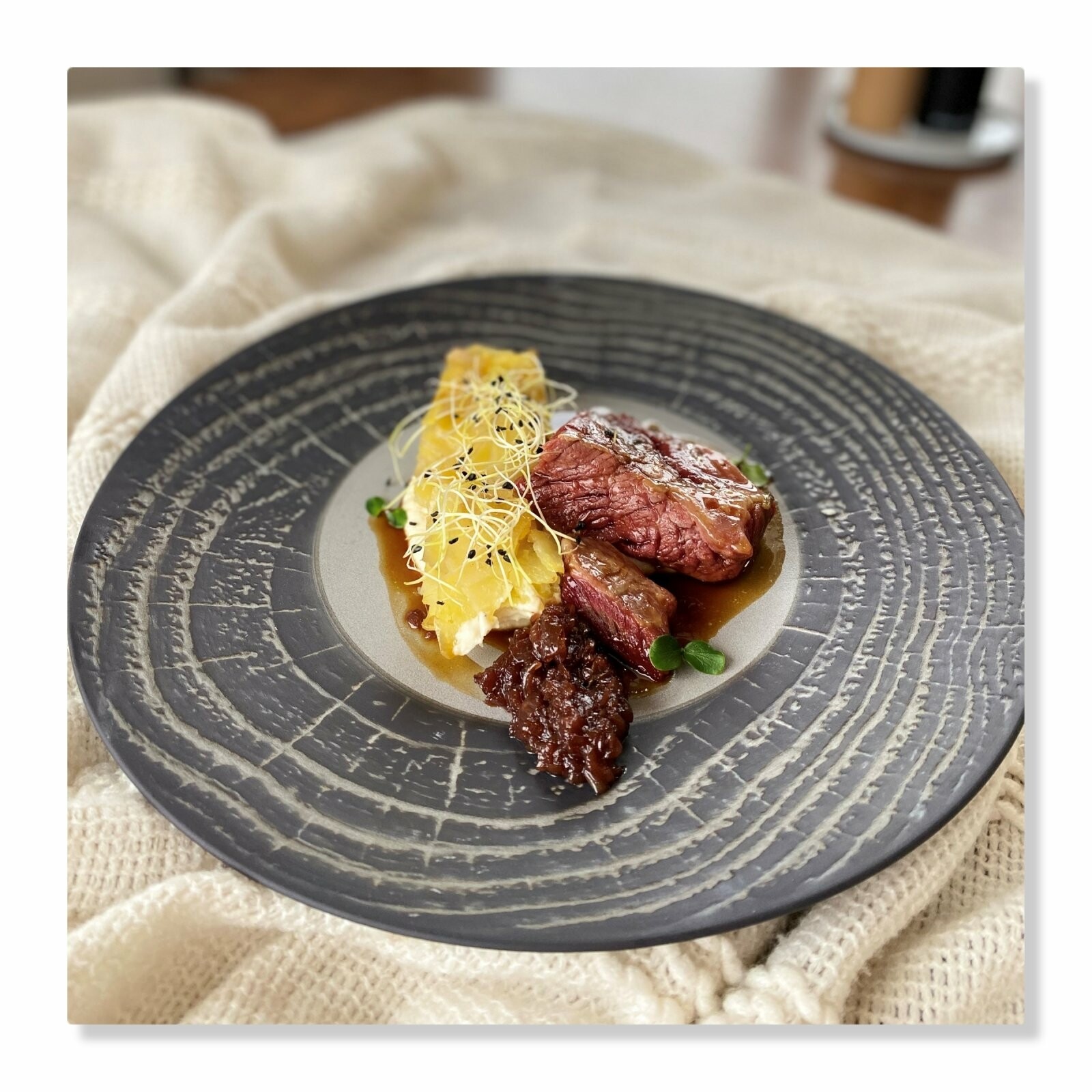 Místní kuchaři se zaměřují na sezónní kvalitní suroviny, a proto mají v každém ročním období odlišné menu. Naleznete zde mezinárodní pokrmy s akcentem na tuzemskou kuchyni. Všechny suroviny odebírají o místních zemědělců a farmářů, kteří se nacházejí v okolí Jinošova.