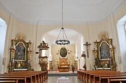 Z původního pozdně románského kostela nechal Santini pouze hlavní loď, kterou však proměnil v kněžiště s oltářem, a tak obrátil celou orientaci kostela (svatostánek směřuje k západu). Na východní straně totiž připojil prostor nové lodi. Vstupní pětiboký portál je působivě barokně realizován a v literatuře je často připomínán italskými vzory. Především římským průčelím stavitele Borrominiho.
