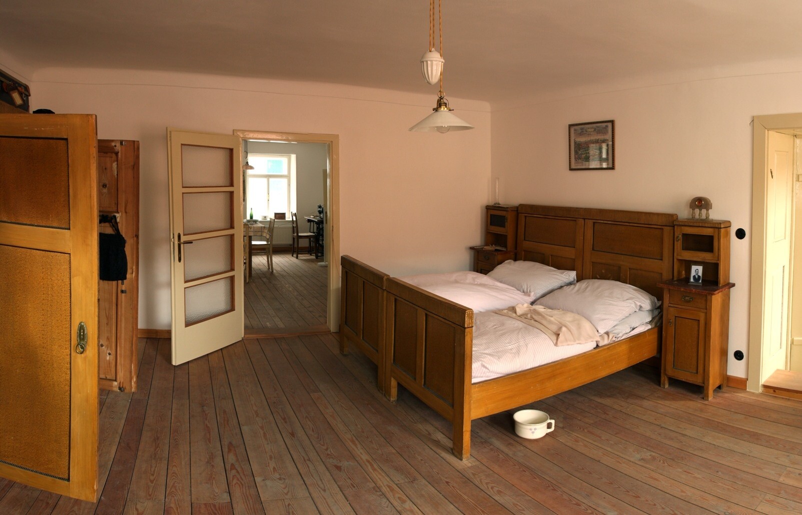 Text pod fotkou: První zmínka o domě Seligmanna Bauera pochází z roku 1724, majitel ho ale zřejmě postavil až před rokem 1798 na takzvaném Španělovském pozemku. Protože byl dům spojený se synagogou, museli majitelé nechat procházet ženy po schodišti až na galerii.