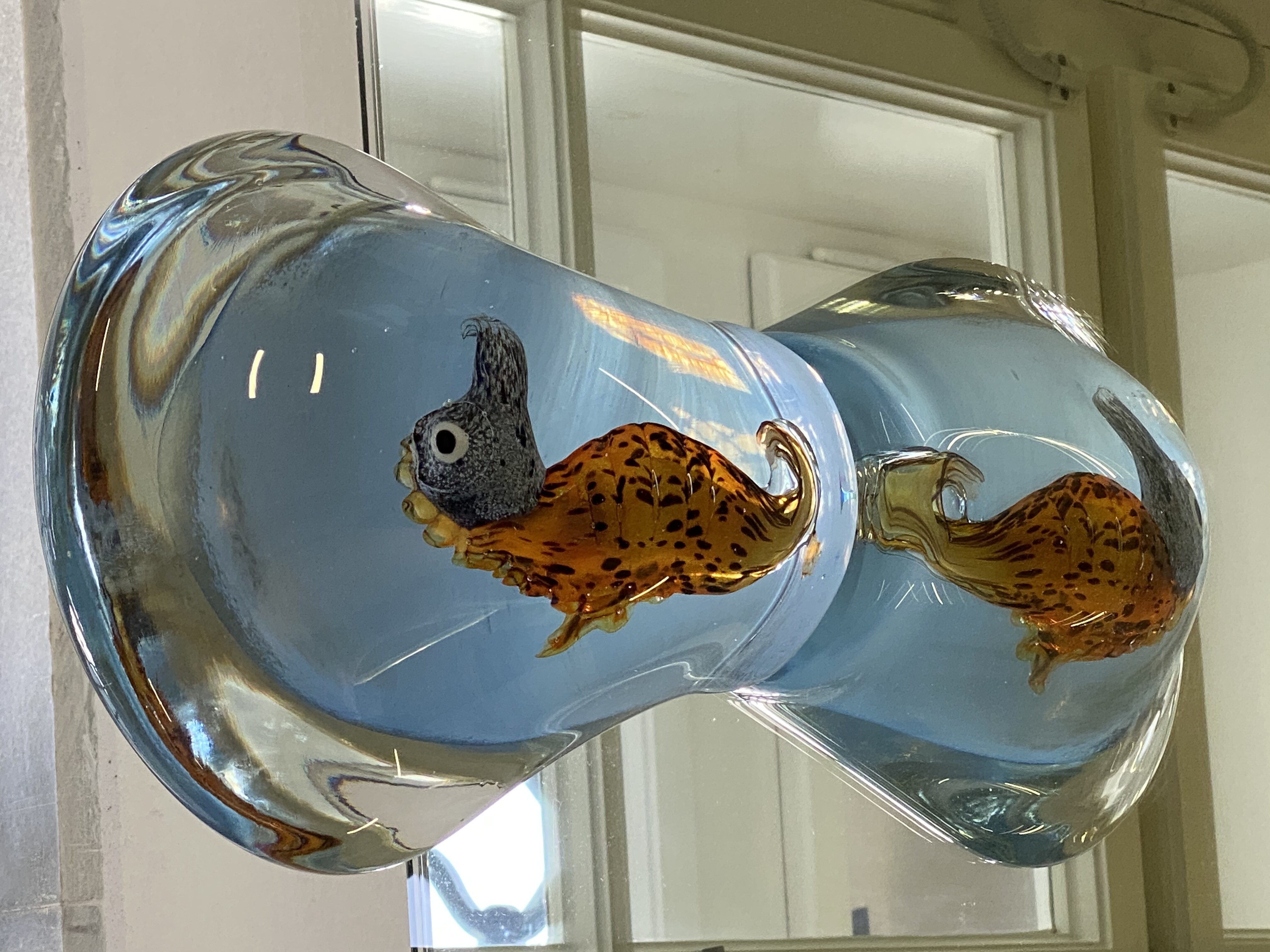 Výběr z díla sklářského výtvarníka Jaroslava Svobody (mansarda galerie) a jeho autorské a sympoziální objekty i věci z autorských kolekcí, které tvořil před rokem 1989 ve Škrdlovicích a poté ve své soukromé sklárně v Karlově.