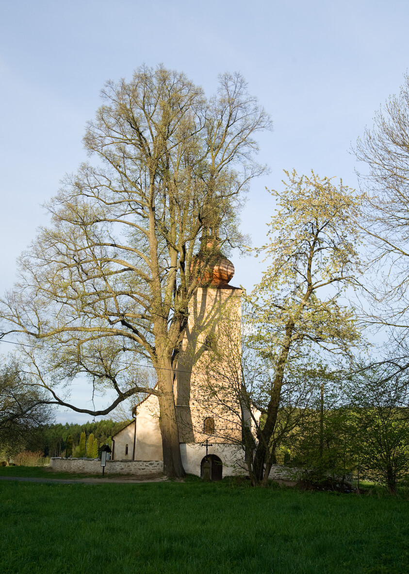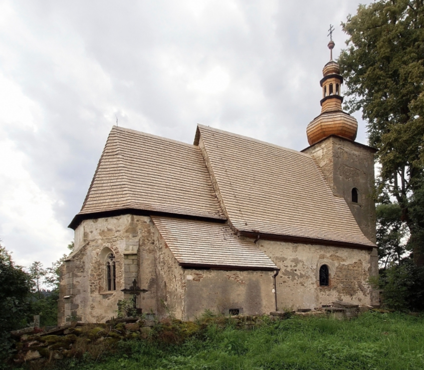 Ze vsi se zachoval už jenom kostel s věží ze 17. století a s gotickými nástěnnými malbami ze 14. století. Ty tvoří podivuhodný ikonografický celek, jsou zde scény Poslední večeře, Umučení deseti tisíc rytířů, scény ze života a mučednickou smrt sv. Markéty i vyobrazení Kaina s Ábelem nebo Pietu - oplakávání Krista.