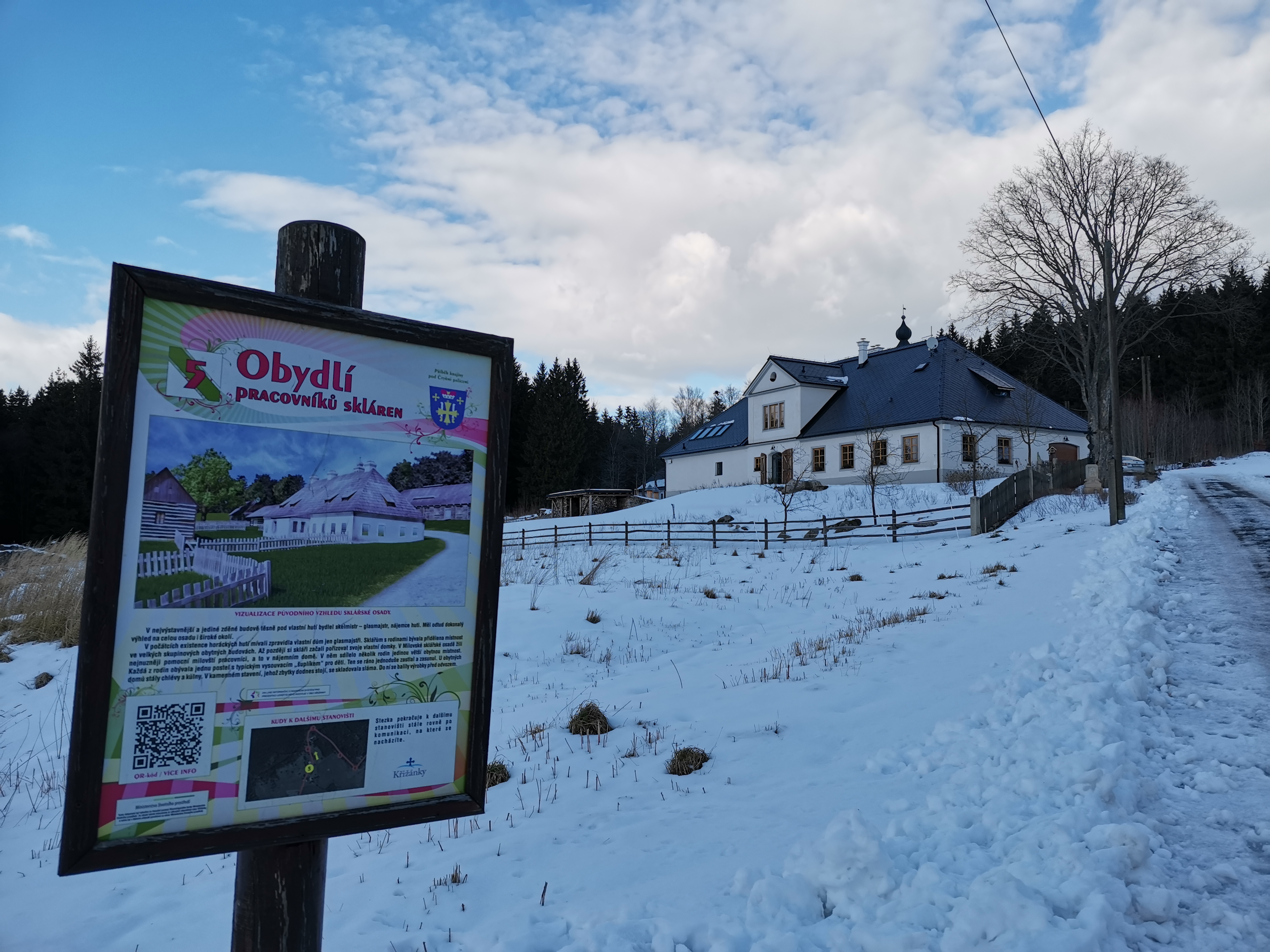 Okružní naučná stezka má 20 zastavení. Vychází od mostu přes Svratku, míří pod Čtyři palice a přes České Milovy se vrací zpět. Naučné tabule vyprávějí Příběh krajiny pod Čtyřmi palicemi, kde lze pozorovat pozůstatky milovské skelné huti postavené roku 1835. Kolem ní vznikla celá osada s množstvím domů, v nichž žily stovky sklářů a dalších řemeslníků. Dodnes se dochoval dům skelmistra, který je nyní krásně opravený.