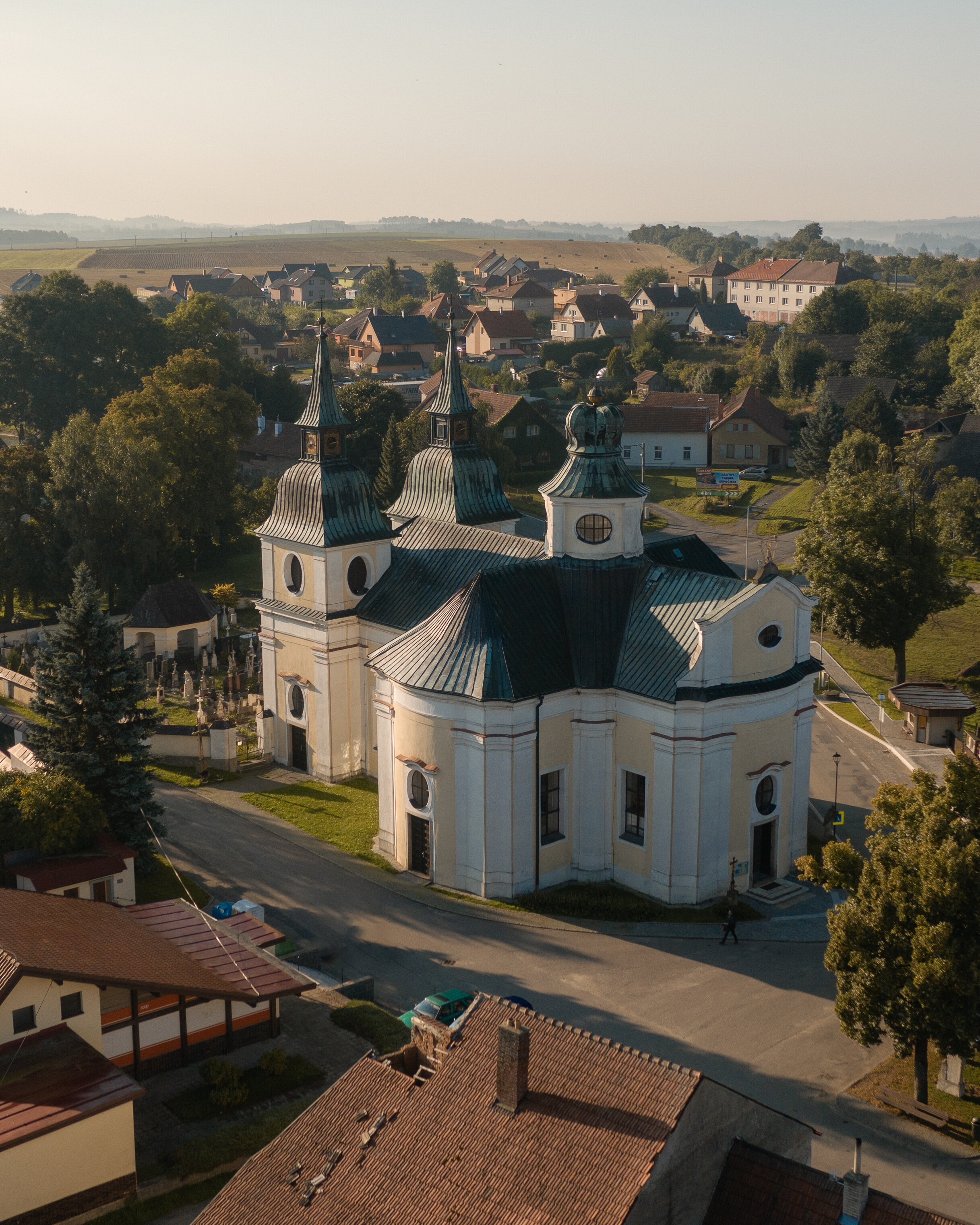 Kostel je poctou nejen zemskému patronu, ale také opatu Vejmluvovi, který byl pokřtěn stejným jménem. Kopule kostela, zdobená lucernou ve tvaru knížecí čapky, se odráží v hladině rybníka a nad vstupem do kostela najdete i symbol dvojitého W, počátečního