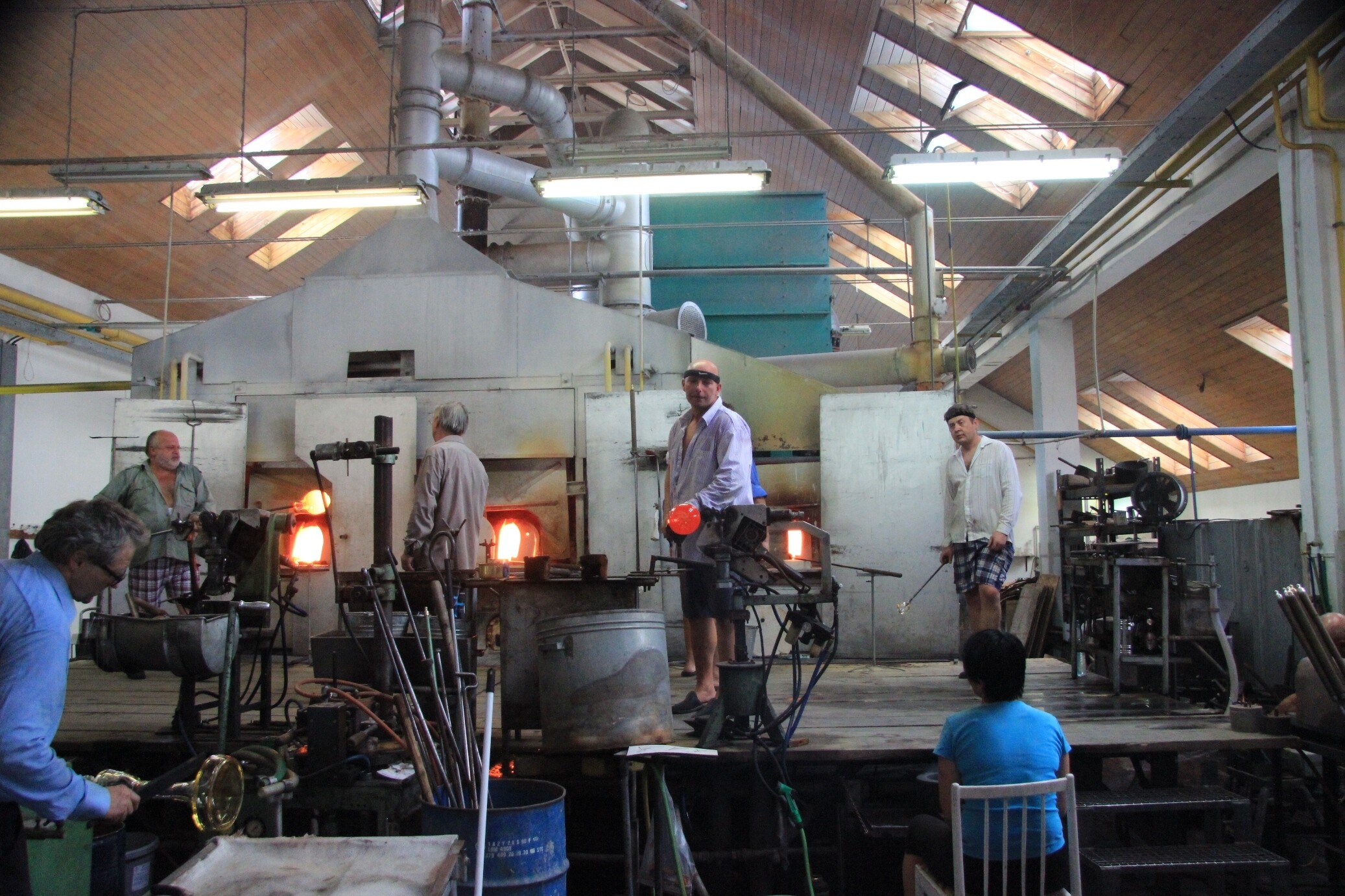 Práci sklářů můžete sledovat z pohodlí prosklené galerie.