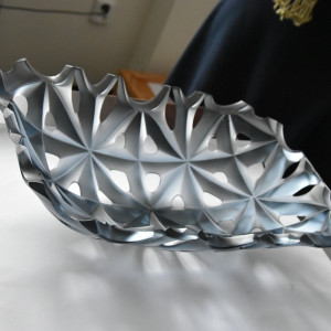Ve svých experimentech využívá tradičních sklářských řemeslných technik jako je broušení, lehání a tavení skla do formy.
