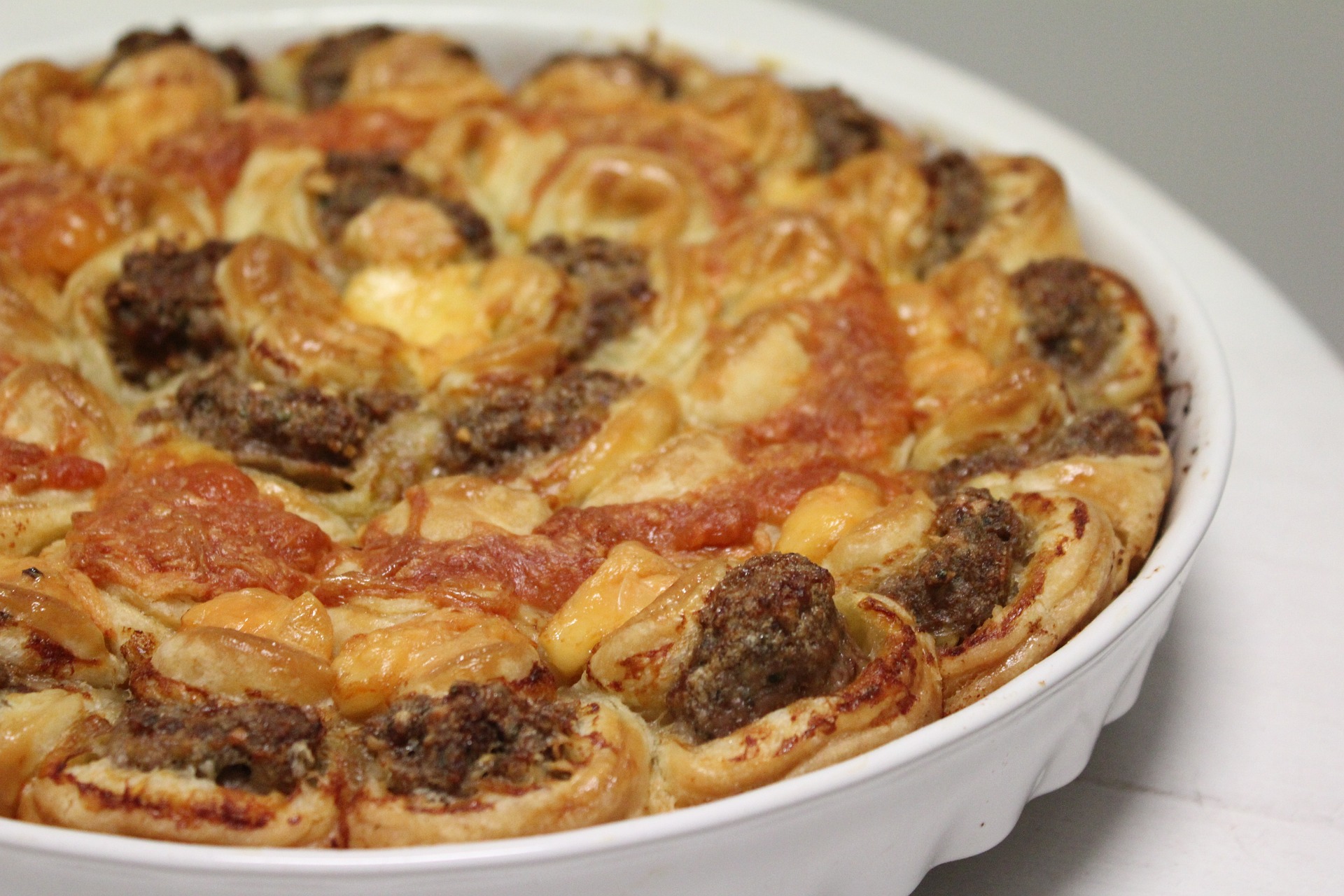 Smícháme maso, sůl, pepř, vajíčko, cibuli a chleba, přidáme vodu nebo rajskou šťávu a vše dobře promícháme. Polovinu této směsi dáme do dobře vymazané formy, uhladíme povrch a doprostřed vmačkáme uvařená vejce. Přikryjeme je druhou polovinou masové směsi. Povrch ozdobíme kolečky rajských jablek a cibule, pokapeme olejem a pečeme při 180° C asi 1½ hodiny.