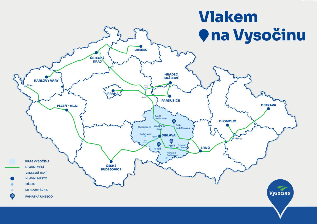 A kam to bude? Zastávky na Vysočině vás rozhodně nadchnou. V našem kraji je stále co prozkoumávat, ať už jde o zapomenuté zříceniny, krásné zámky a nebo gastro zážitky. Pokud budete cestovat s Českými drahami, zeptejte se ještě na možnost využití tarifu Veřejné dopravy Vysočiny. Vaše jízdenka tak bude přestupní mezi vlaky, autobusy i vybranými městskými spoji a mohla by být i levnější. Více informací o výhodném jízdném naleznete zde.