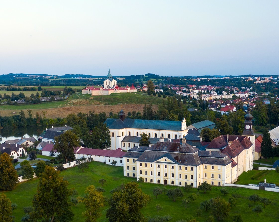 Historické centrum města Žďáru nad Sázavou se nachází v dnešním areálu zámku, v místech bývalého cisterciáckého kláštera. Klášter dosáhl největšího rozkvětu a rozmachu v první polovině 18. století za správy opata Václava Vejmluvy, kdy také došlo k rozsáhlé barokní přestavbě. Realizoval ji geniální architekt J. B. Santini.
