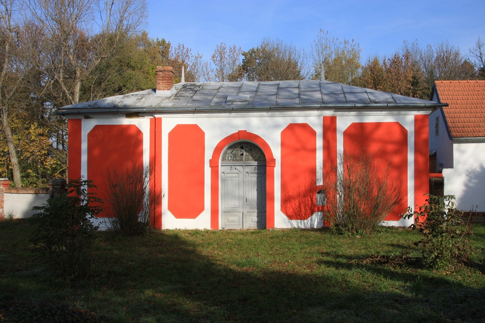 Na severu areálu židovského hřbitova v Moravských Budějovicích stojí obřadní síň a vedle potom hrobnický domek, který je stále obýván.
