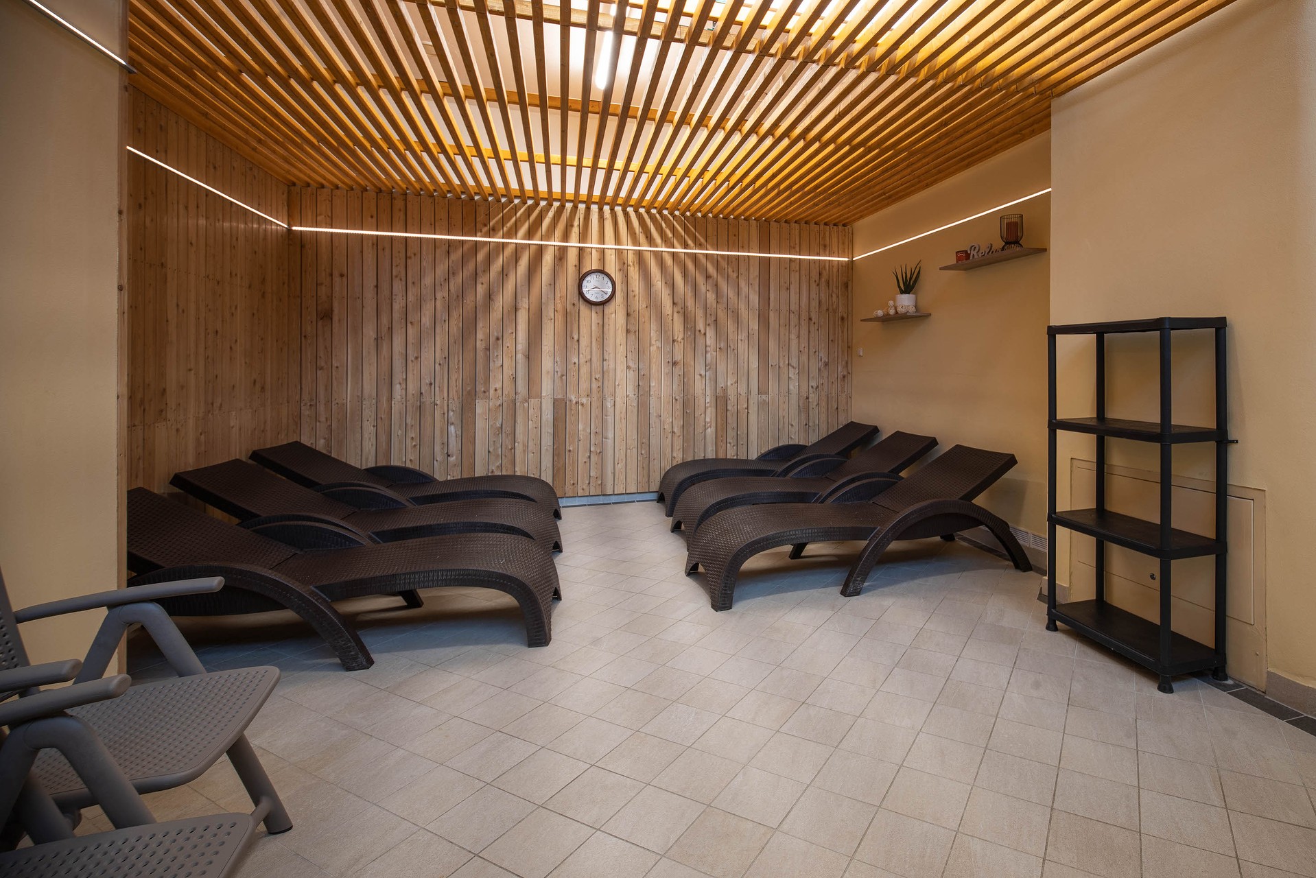 Krytá část funguje celoročně a zahrnuje velký rekreační bazén s toboganem, vířivku a dětské brouzdaliště.. Vejde se tam až 240 osob. Součástí je i divoká řeka, perličková lůžka a masážní trysky a další. Uvnitř je v provozu i klasická suchá sauna, parní kabina, vertikální turbosolárium, Kneippův chodník a odpočinková zóna. Lze si objednat i masáž a zajít na jídlo a pití do restaurace nebo bufetu.
