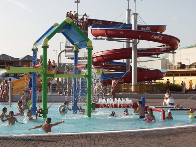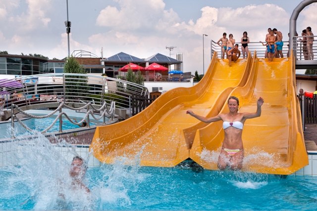 Velký aquapark v Jihlavě nabízí venkovní i vnitřní část se spoustou atrakcí pro děti i dospělé a také wellness a sportoviště.