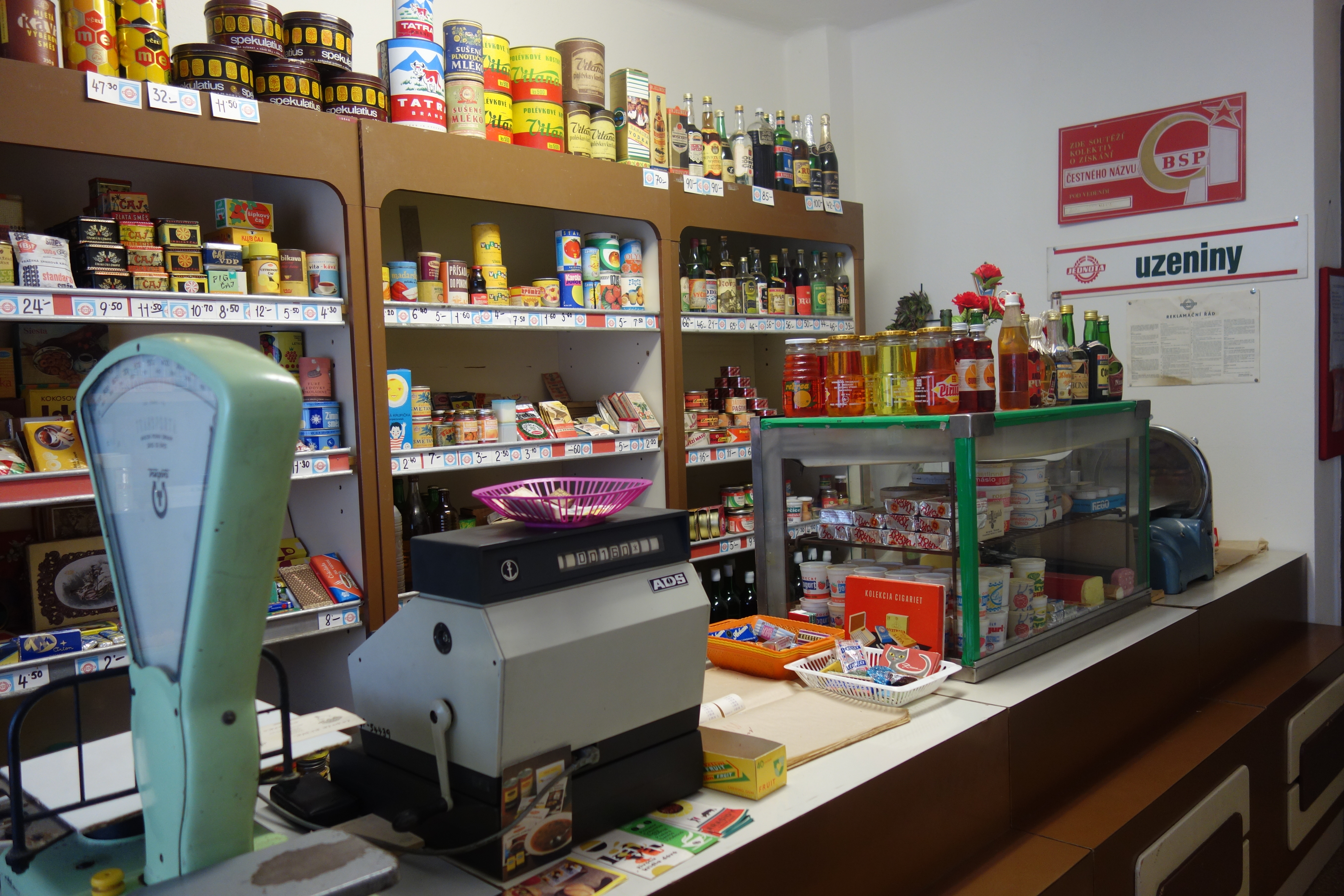 Další expozicí je obchod Jednota, který návštěvníka zavede do venkovské prodejny v 70. letech 20. století.