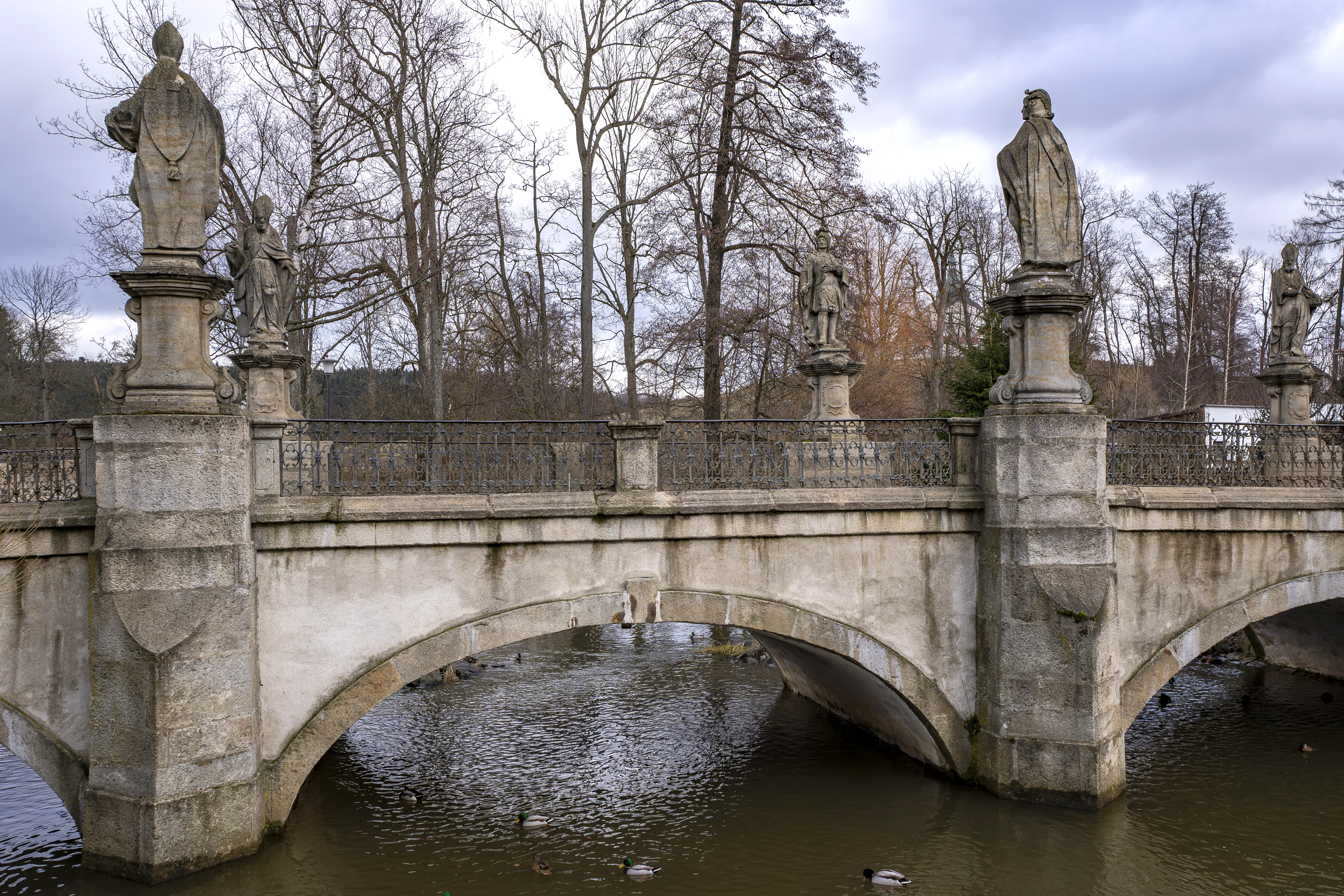 Barokní most v sousedství Zámku Žďár slouží svému účelu do dnešních dní. Na mostě jsou umístěny repliky soch světců, originály jsou uloženy v Dolním hřbitově.