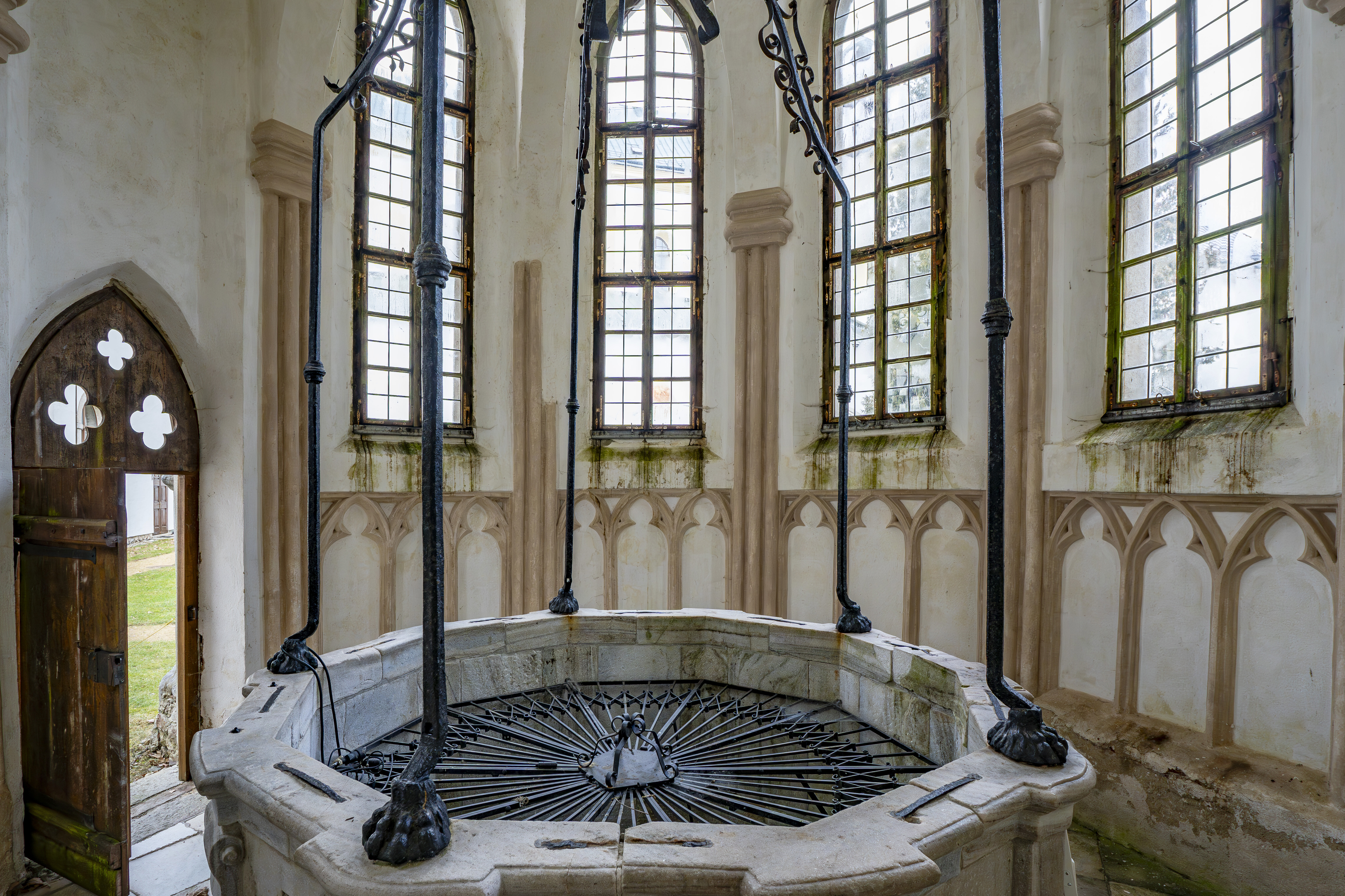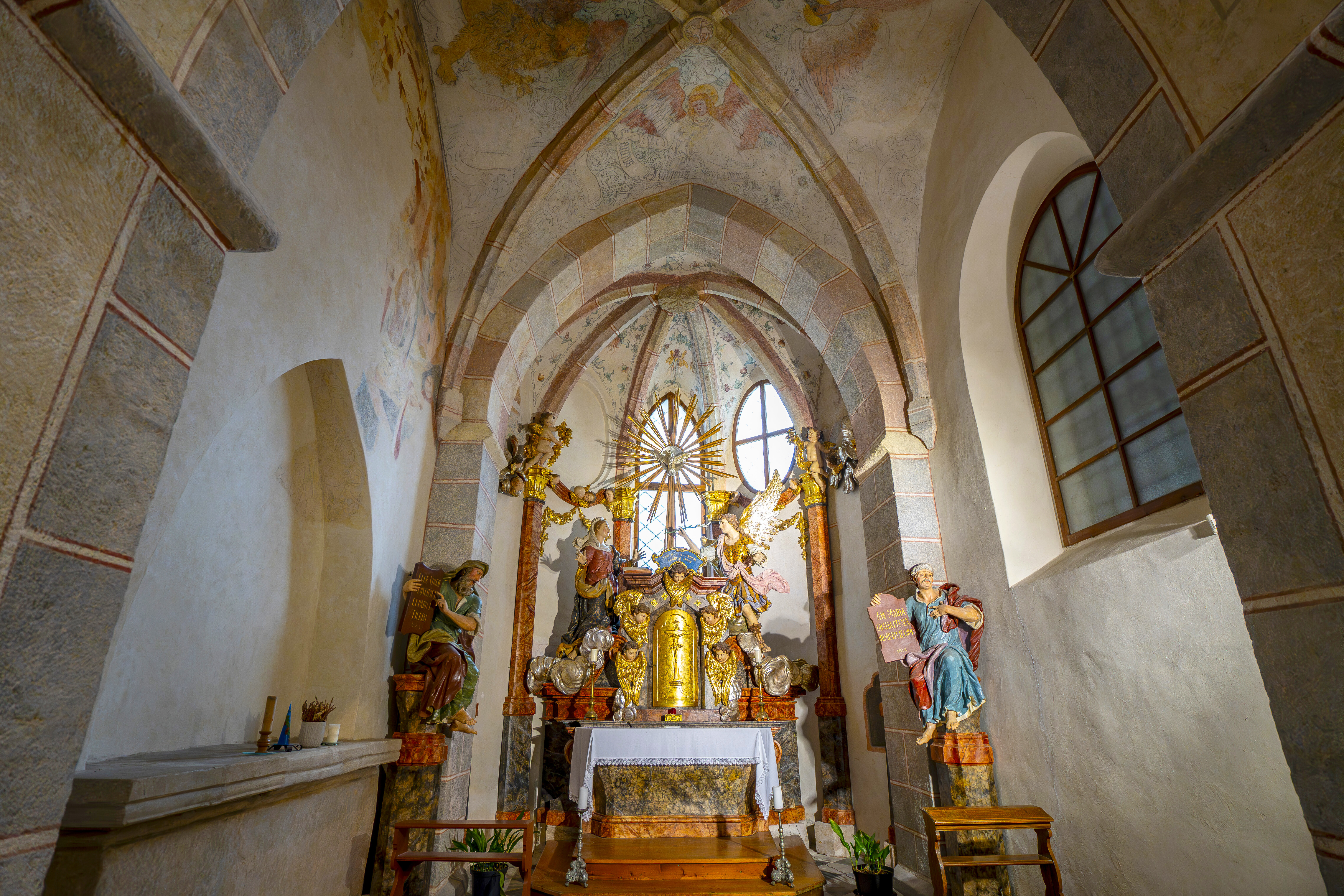 Původní gotický kostel Santini převedl do barokní podoby. Do přední části vetknul mostové varhanní empory, upravil oltářní prostor a navrhl řešení vnitřní umělecké výzdoby.