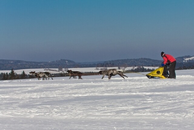 Mezi Vlachovicemi a Skleným je upraveno i pár okruhů pro psí spřežení.