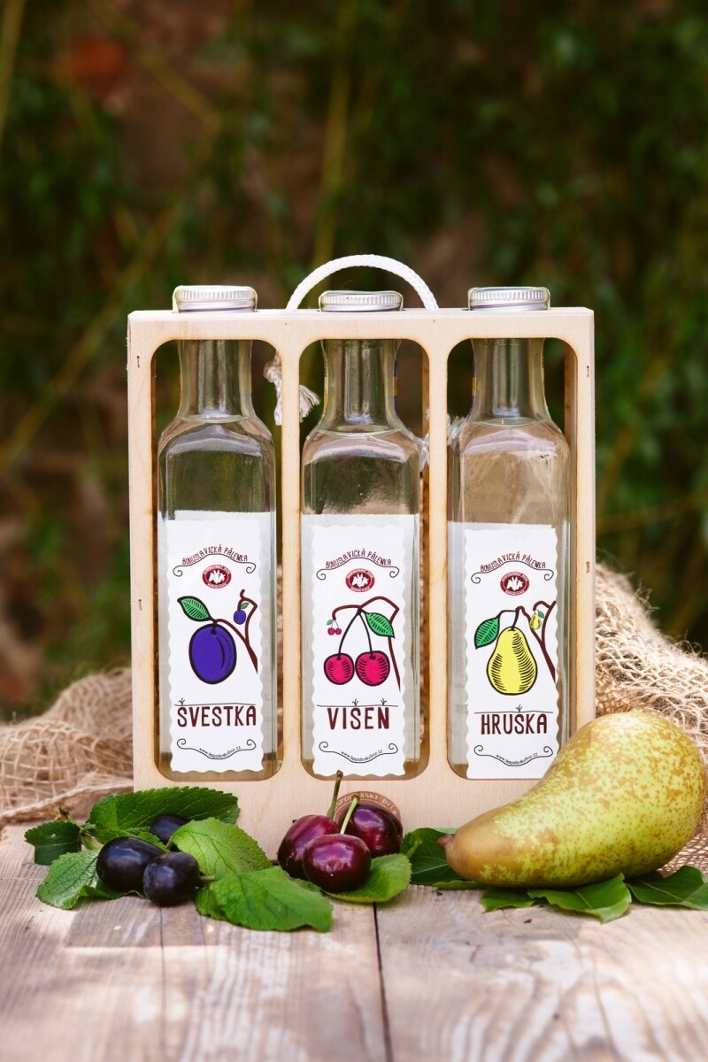 100% česká originální pálenka z různých druhů ovoce vzniká v Bohuslavickém dvoře nedaleko Telče. K dostání je po jednotlivých kusech, ale i v krásné sadě, která je vhodná jako dárek. Vychutnáte si ji na rodinné oslavě i při posezení s přáteli.